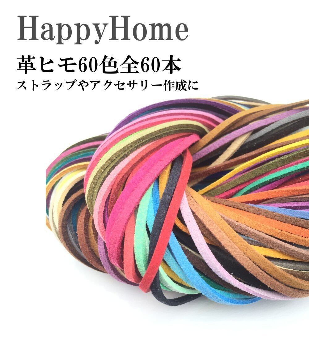 HappyHome スウェード革ひも アクセサリー用 60色 60本 3ミリ×1メートル ブレスレット ミサンガ 手作りアクセサリーに
