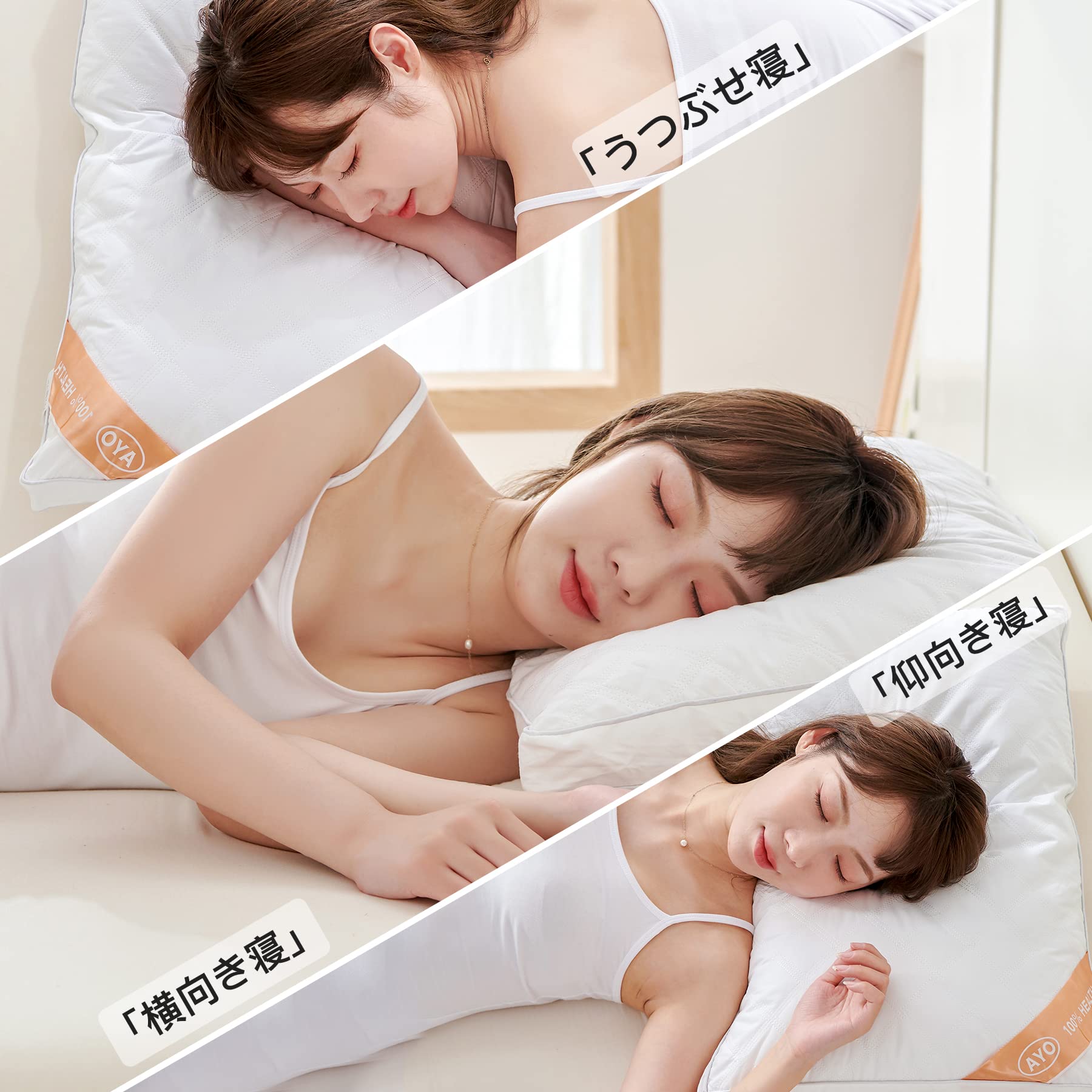AYO 枕 まくら 高級ホテル仕様 高反発枕 横向き対応 丸洗い可能 立体構造43x63cm ホワイト(63*43*22cm)