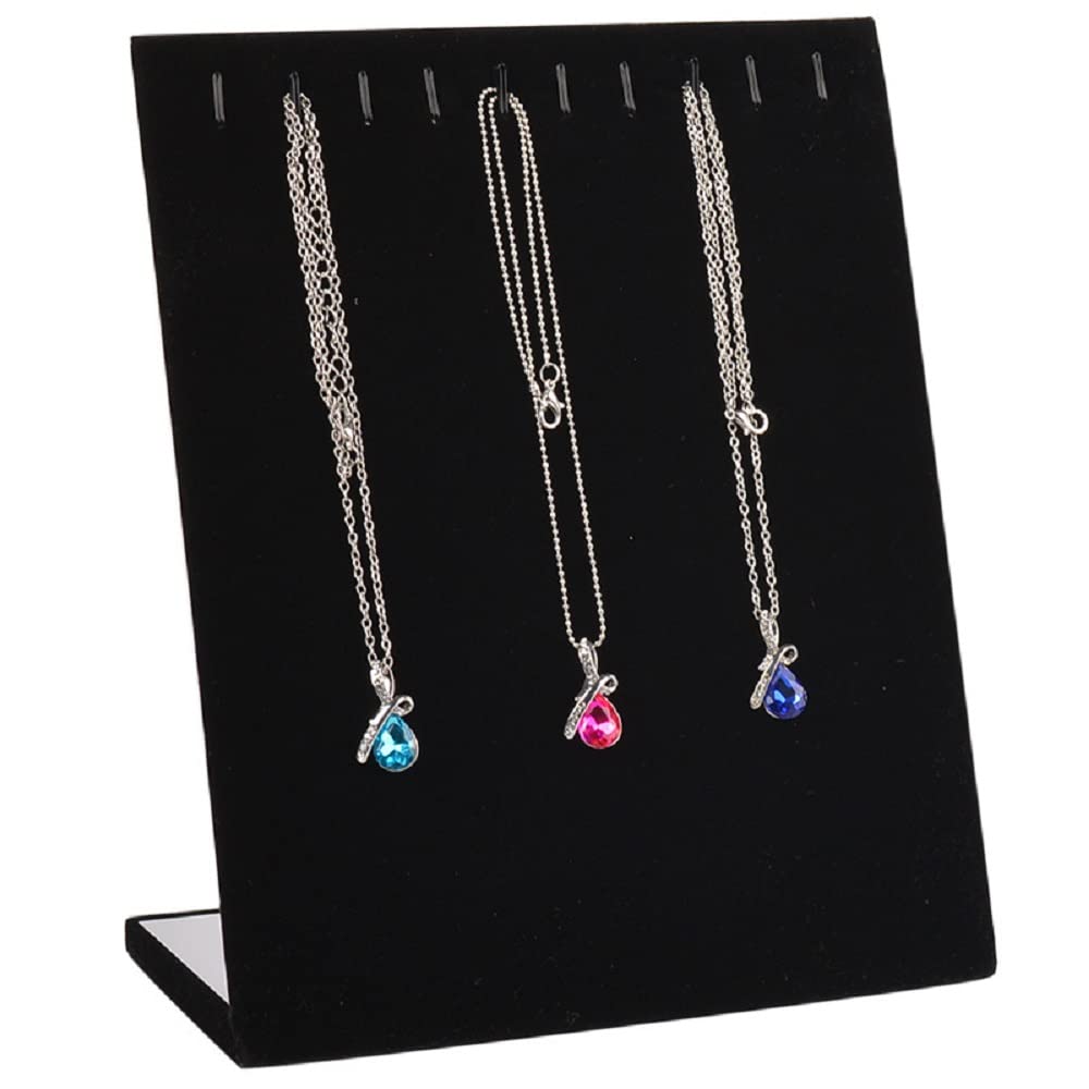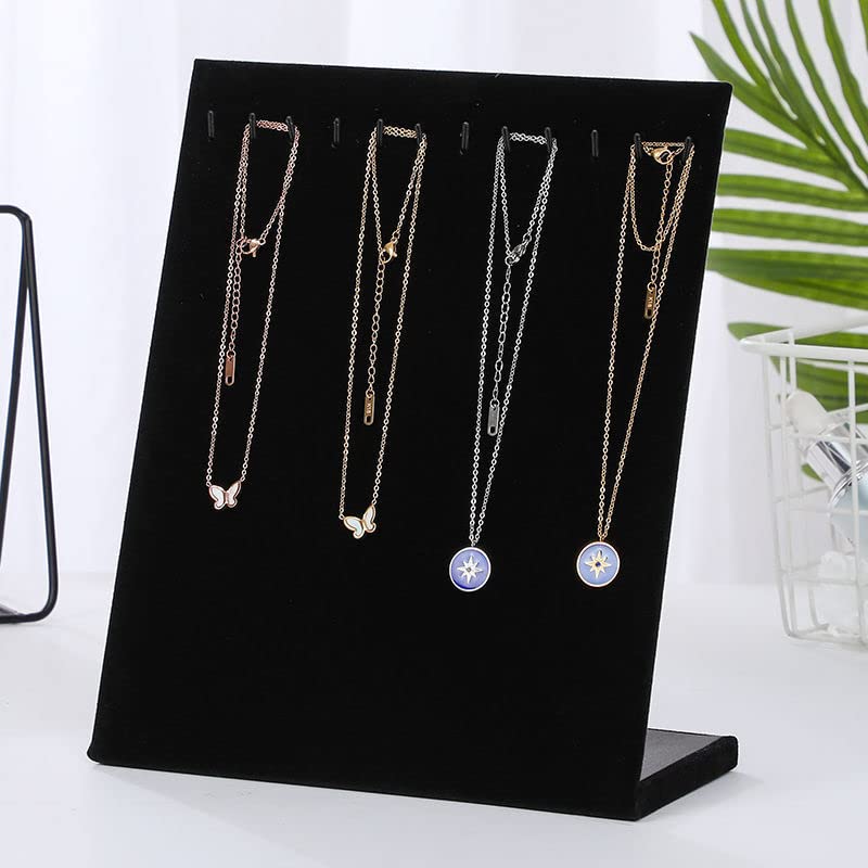 ネックレスディスプレイ 11本用 ベロア調 ジュエリー トレイ ネックレススタンド アクセサリースタンド アクセサリー展示 収納 L型 記念日 誕生日 バレンタイン ギフト ネックレス整理 (ブラック)