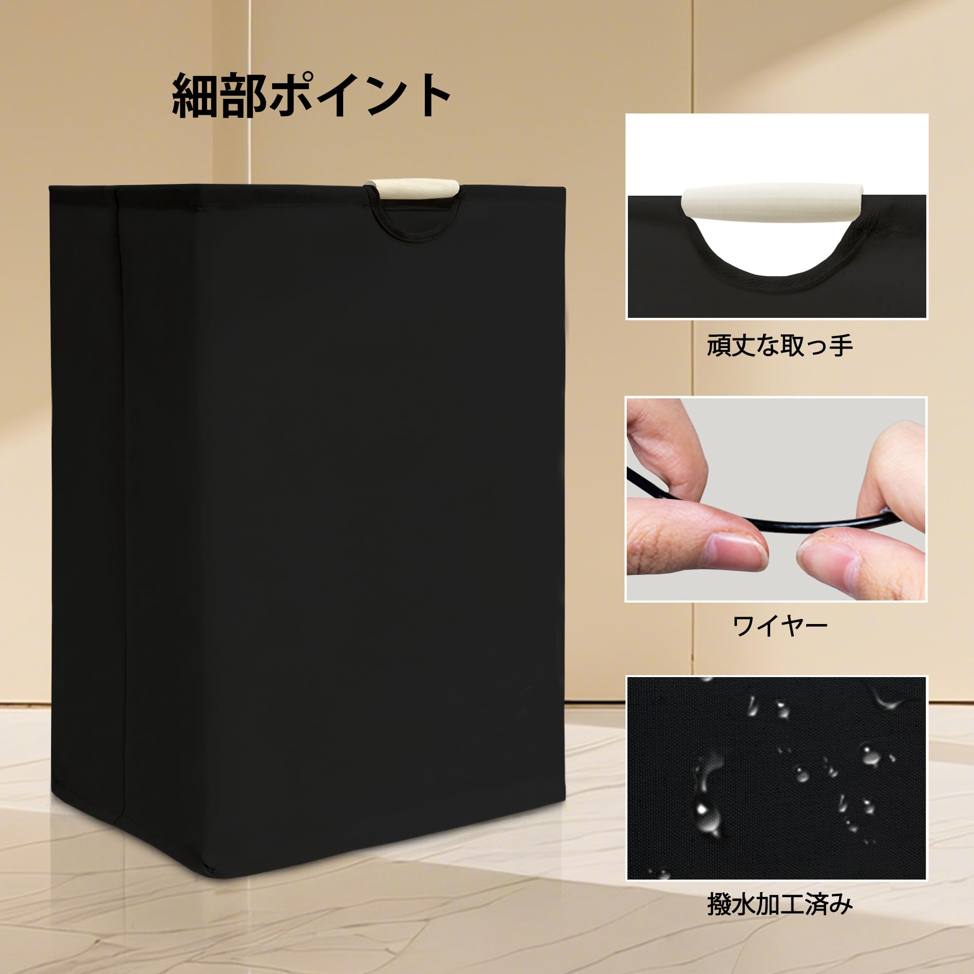撥水加工済み---頑丈な素材でランドリーボックスが空いていても、立つことができます。またランドリーバスケットはPEVAコーティングをしたコットン布で作られていて、より厚く、耐摩耗性に優れています。濡れた洗濯物も楽々入れます。