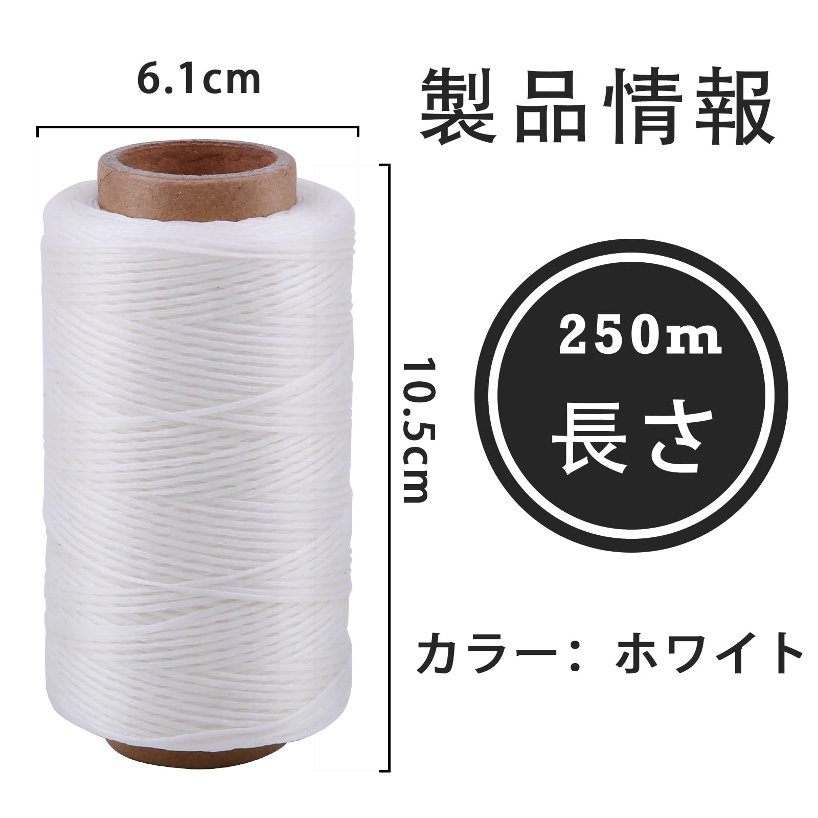 ホワイト 274 ヤード 蝋引き糸 ロウ引き糸 ワックスコード 手縫い 編み 手芸 紐 DIY レザークラフト 糸 ろう引き糸 蝋引き紐 長さ250m 初心者