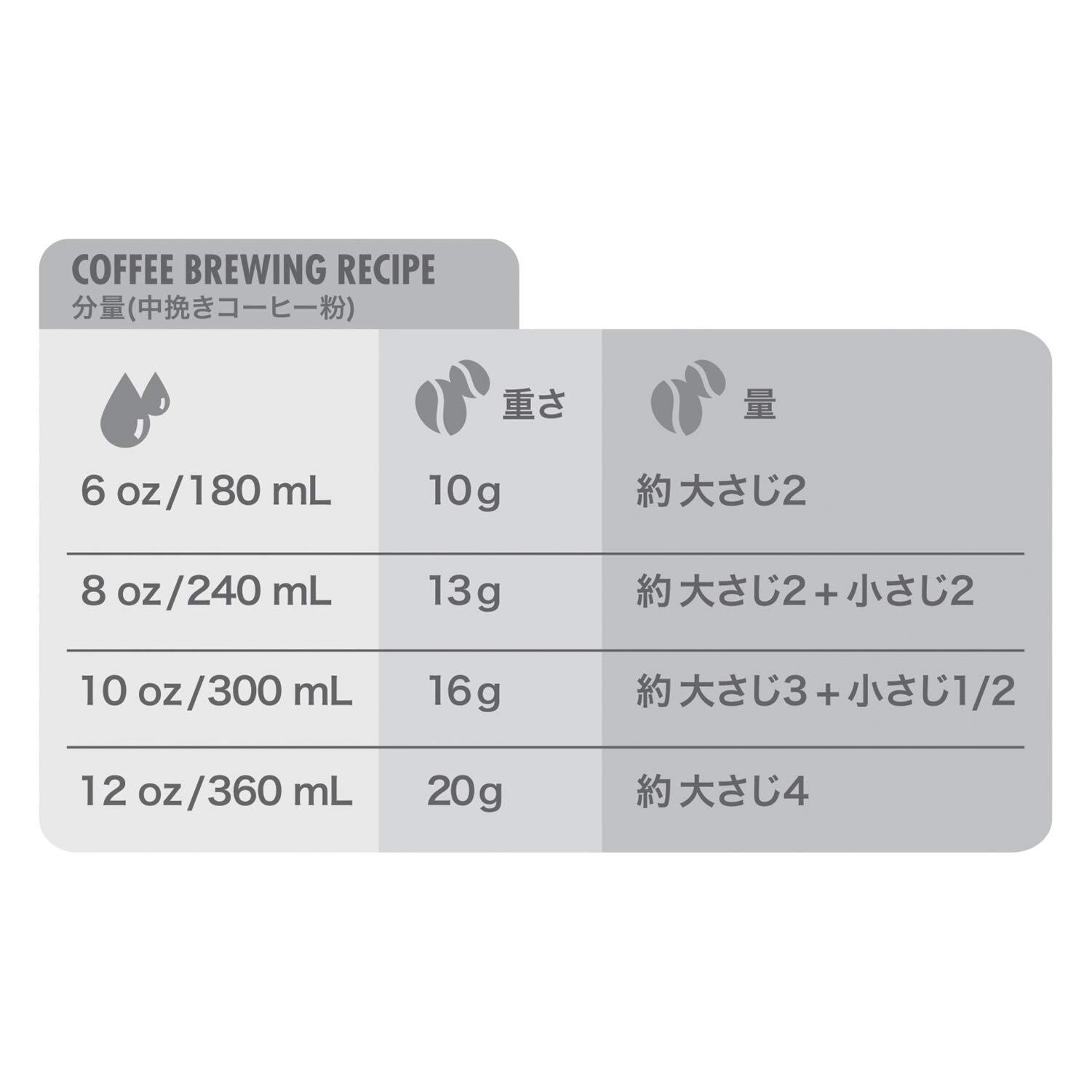お湯を注ぐ部分には、6oz(180ml)〜12oz(360ml)のメモリが表示され、一人用から二人用のコーヒーがドリップできます。
