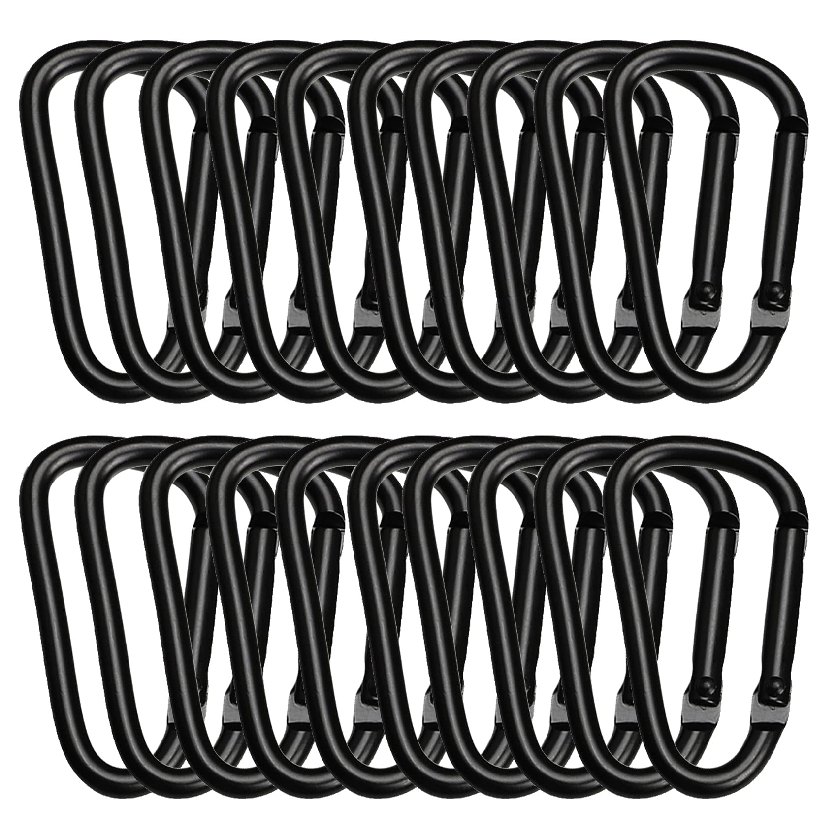 【製品仕様】商品内に含む:20個のアルミニウム合金カラビナ、長さ50mm、幅26mm、重量約5g(単個重量)超軽量。