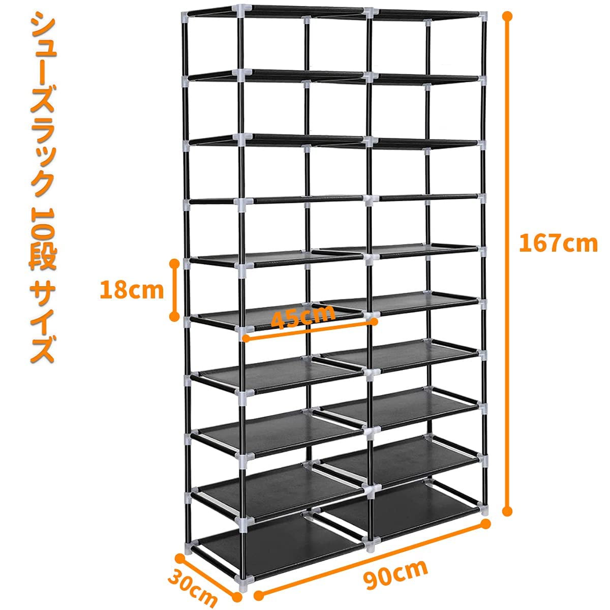 シューズラック 10段 36-40足 防塵カバー 下駄箱 省スペース オーガナイザー 玄関収納 シューズボックス 靴入れ 収納棚 大容量 組み立て式 幅約90×奥行30×高さ167cm 日本語説明書付き