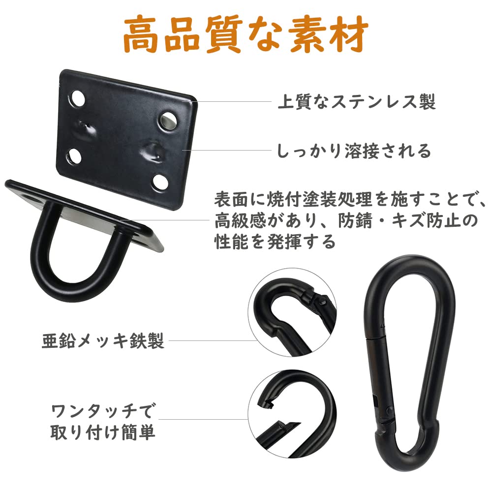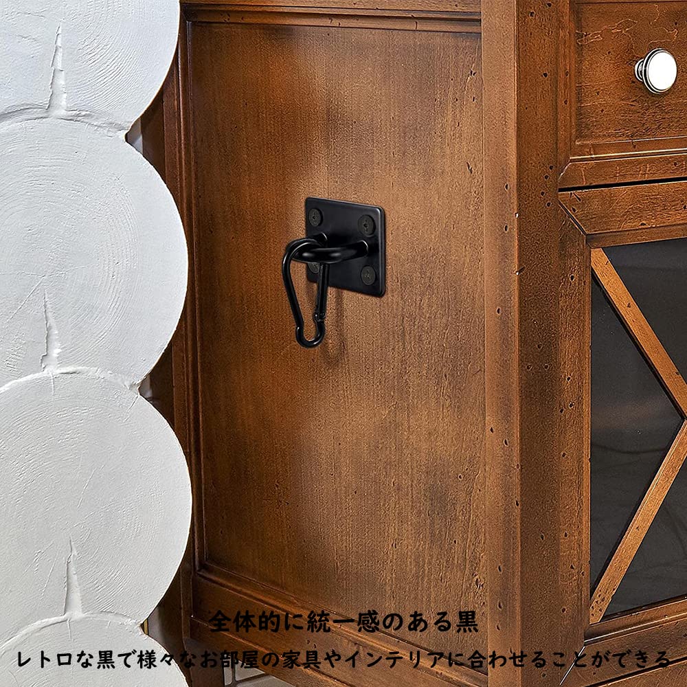 【独特な吊り下げ金具】このU字型のフック金具は4つのネジを利用して、ぐらつかず、しっかりと固定できます。表面は焼付塗装の仕上げが施されておりで、高級感があり、外観を綺麗に保ちます。日よけシート、壁、カーテン、オブジェ、床、家具全般などの色に合わせたレトロな黒を選び、全体に統一感を出しています。