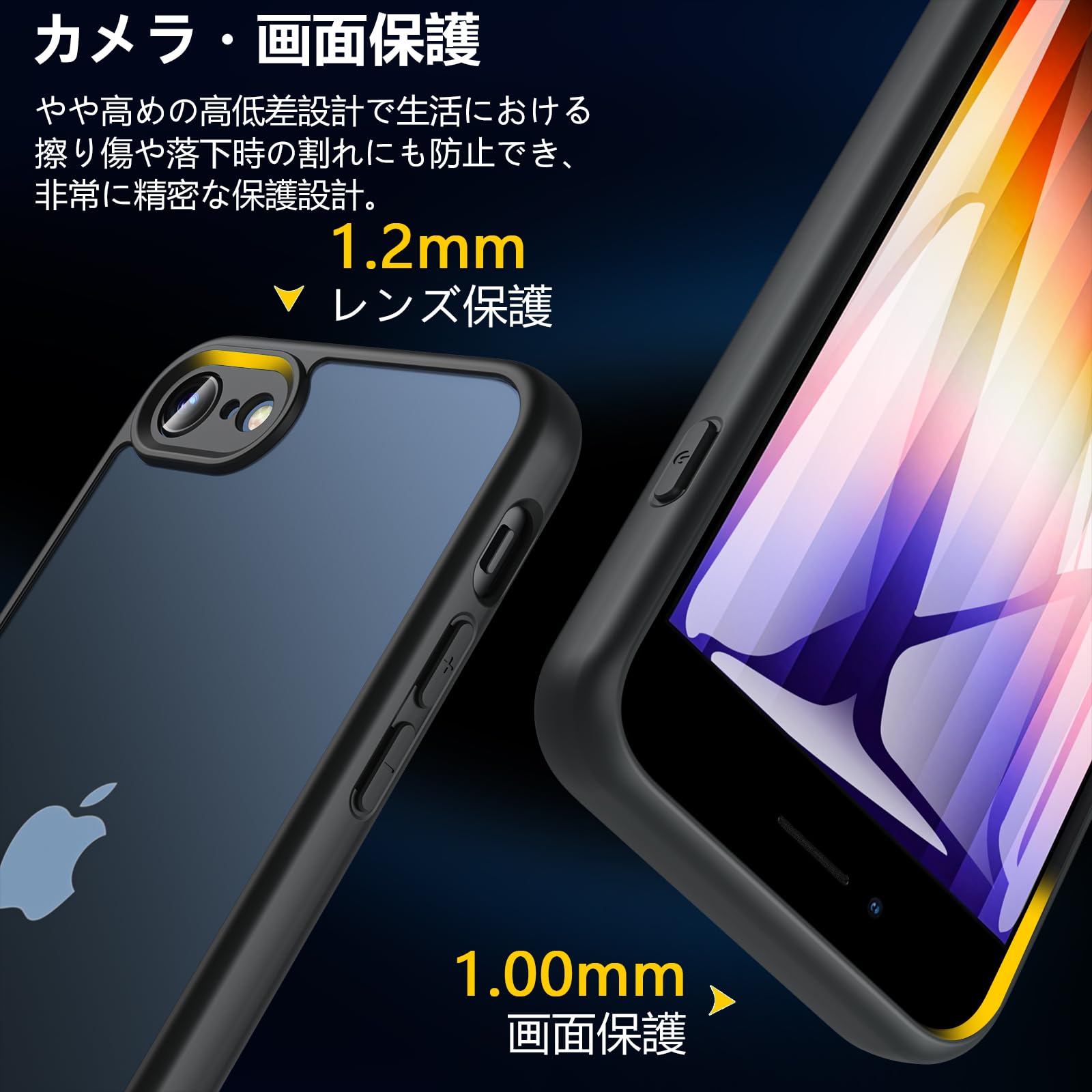 【抜群な耐衝撃性&細部までも保護】厳選された高品質なTPU+PC素材の組み合わせは、耐衝撃性、耐擦り傷性、耐汚れ性、耐久性に優れ、毎日の使用に安心の保護を提供します。また、液晶画面より1mm、カメラより1.2mm高さの高低差デザインに加え、カメラの周りを完全に覆うカメラレンズ保護設計を採用することでスマホ本体の保護を徹底し、平面に置いてもうっかり落としてもスマホをしっかり保護する iPhone se ケース です。