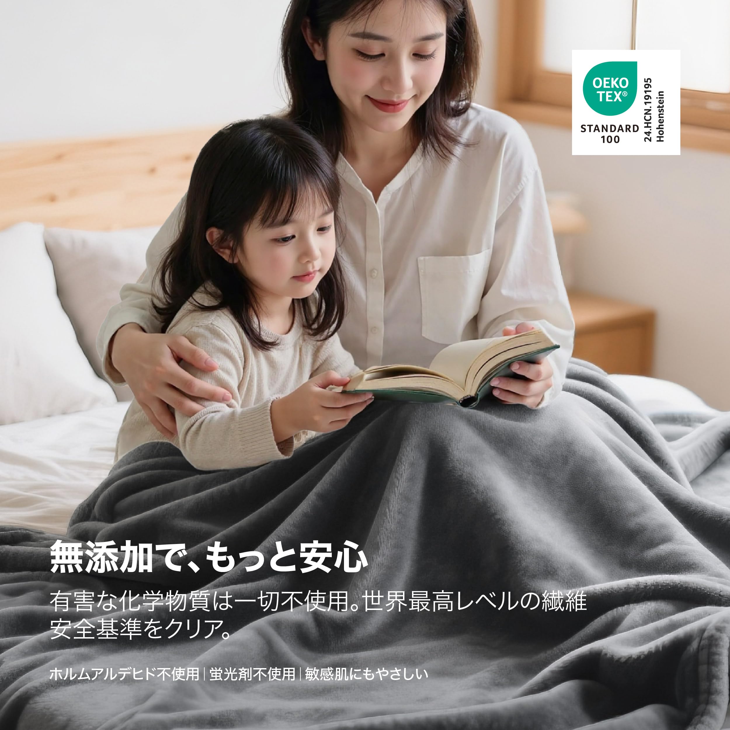 家族みんなに安心をお届け:世界的な繊維安全基準「OEKO-TEX STANDARD 100」認証取得(認証番号:24.HCN.19195)。蛍光剤や有害化学物質を一切含まず、敏感肌の方や赤ちゃんにもやさしい設計。毎日肌に触れても安心してお使いいただけます。家族全員が心地よく使える、信頼の一枚です。