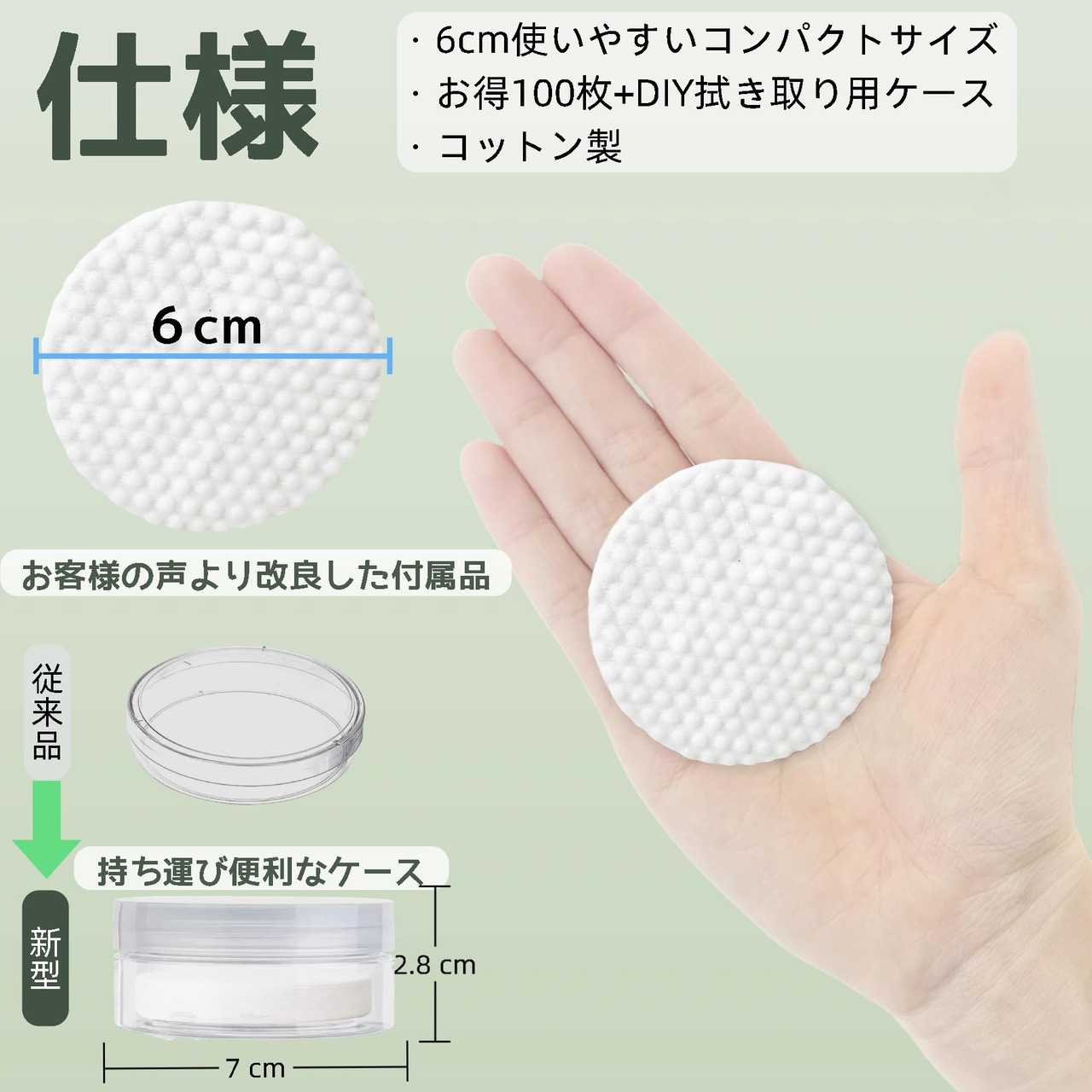 【幅6cm‐韓国コスメトナーパッドと同じサイズ】コットンパッドには日常の拭き取りに使え、ナーパッドの詰め替えにも使用できます。