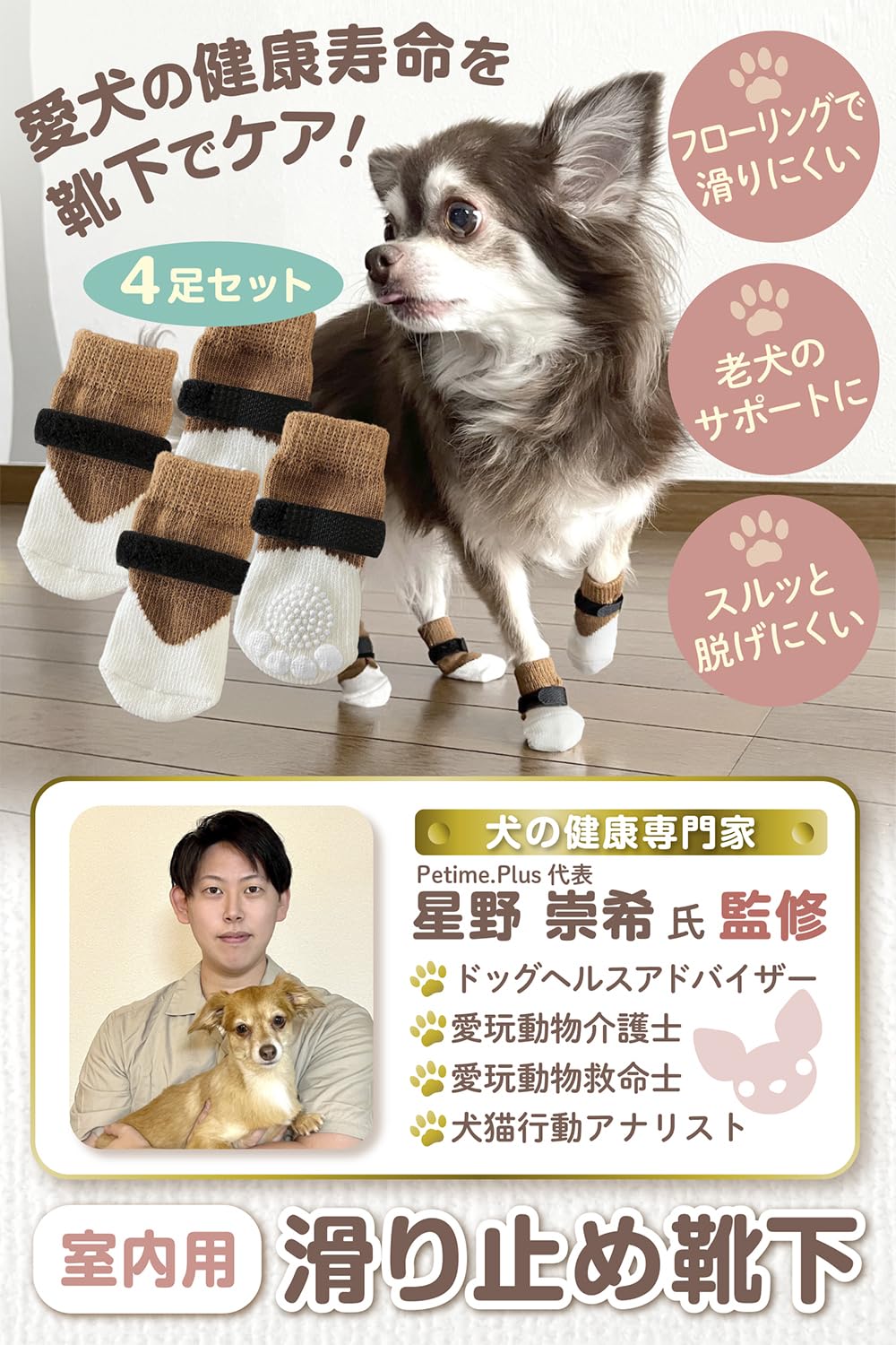 ETLIFE 犬 靴下 滑り止め 【靴下がスルッと脱げにくい】犬用靴下 犬用 屋内用 傷 舐め防止 マジックテープ付き (ブラウン, Mサイズ)