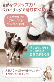 ? 老犬のサポートにも : 老犬や高齢犬など肉球のグリップ力が衰えてきても、靴下の滑り止めで歩けるようにサポート効果も(ご愛犬により効果には個体差があります)。