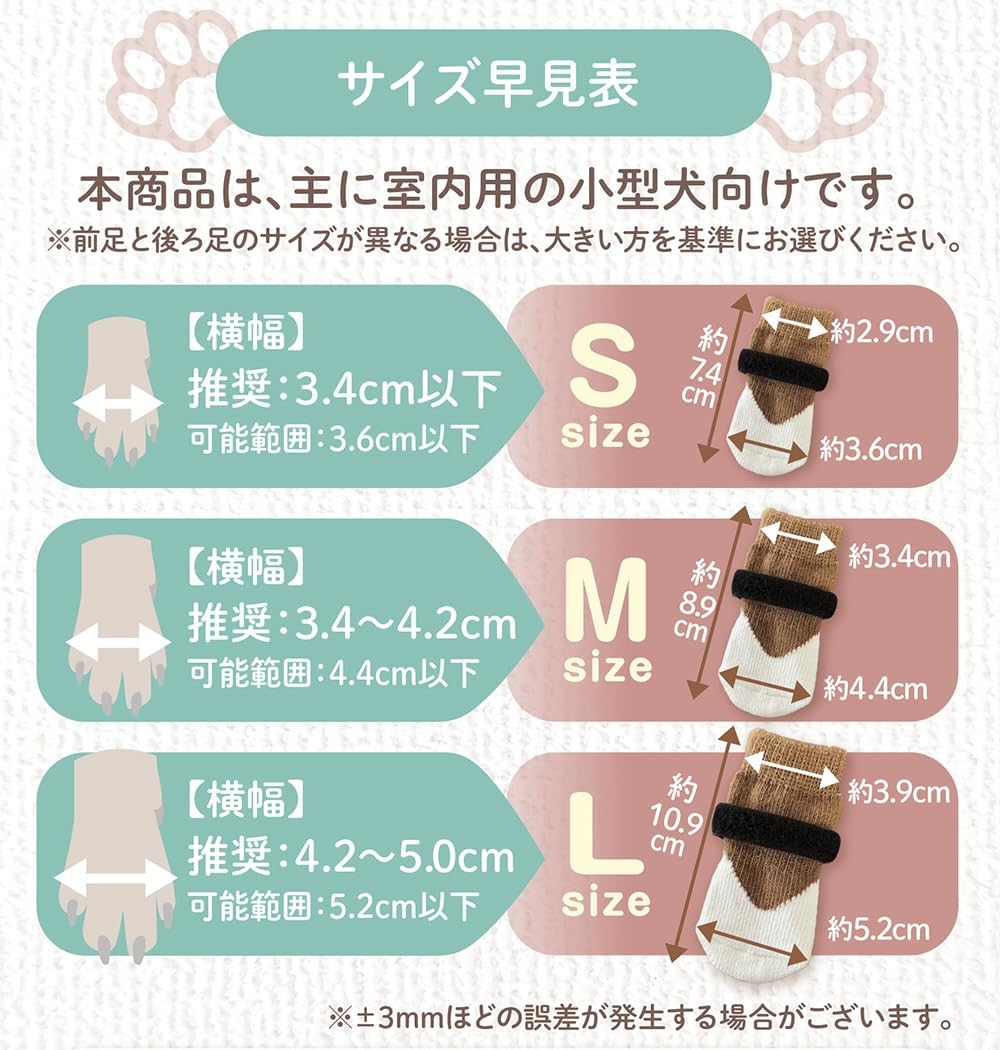 ? 伸縮性と通気性 : 上質なコットンを使用し伸縮性はばつぐん。また、滑り止めもドット模様にすることで通気性を確保しております。犬は肉球から汗をかくので、愛犬のことを思うなら通気性はとても重要です。
