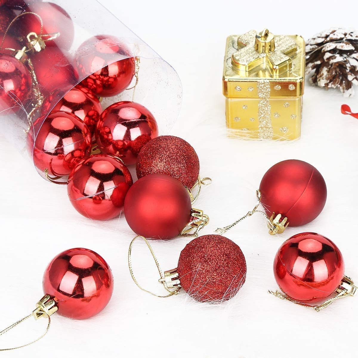 クリスマス 飾り ボール オーナメント 24個 球 玉 Xmas 装飾 アレンジ デコレーション 40mm 赤 (4cm, レッド)