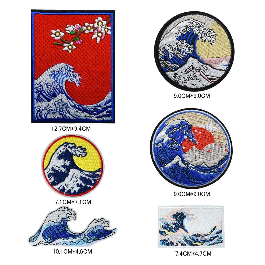 【特価】ワッペン アイロン刺繍 MUNCVY アップリケ DIY服 かながわおきなみうら 波 和風 浮世絵 おしゃれ 可愛い装飾 保育園 幼稚園 パッチ 補修 大きめサイズ 6枚セット 衣類 浴衣 手袋 手帳 飾り | GIGATERA