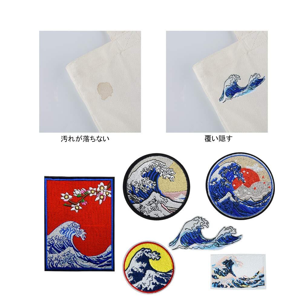 ワッペン アイロン刺繍 MUNCVY アップリケ DIY服 かながわおきなみうら 波 和風 浮世絵 おしゃれ 可愛い装飾 保育園 幼稚園 パッチ 補修 大きめサイズ 6枚セット 衣類 浴衣 手袋 手帳 飾り