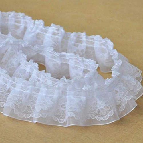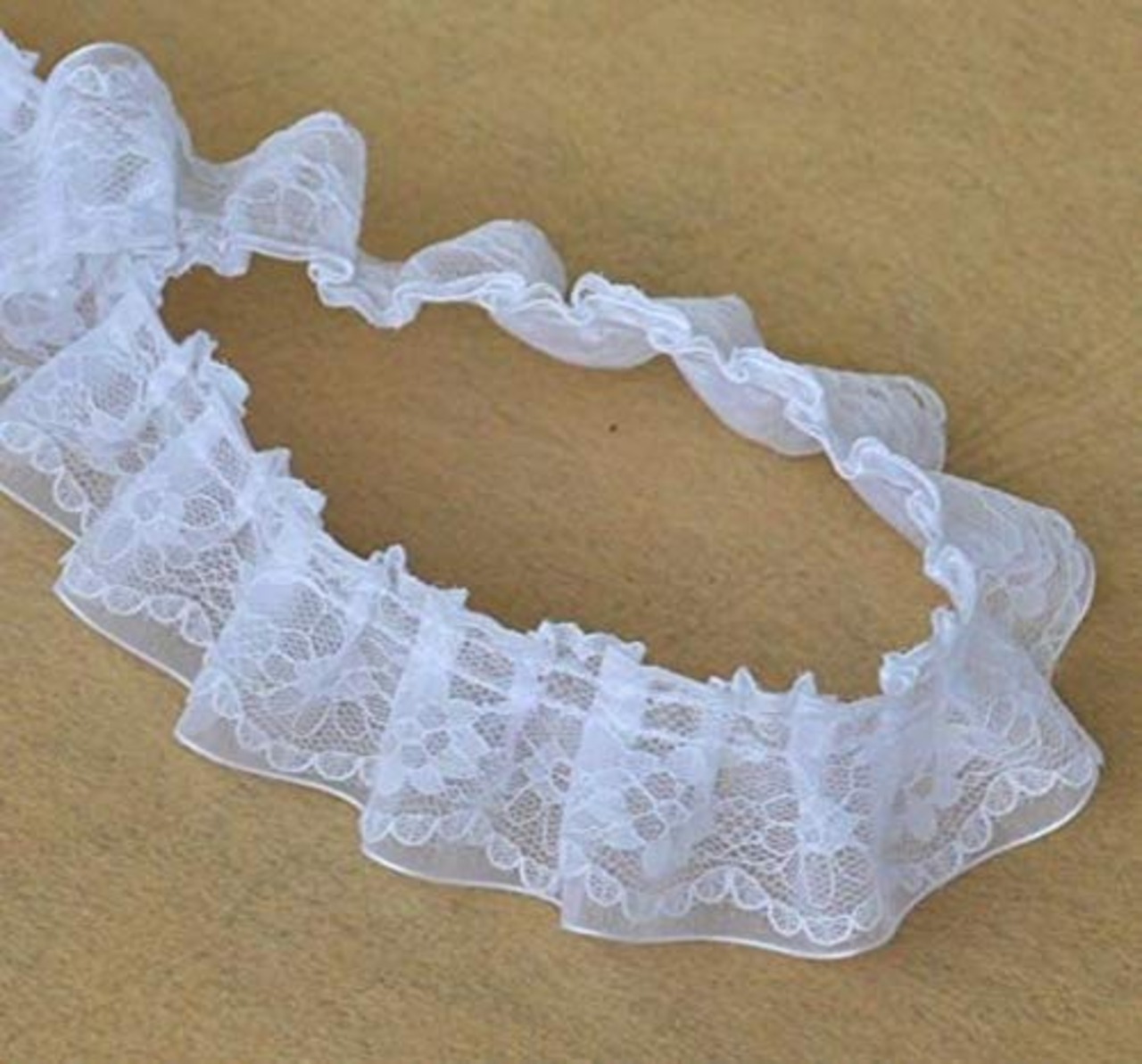 幅4cm×長さ5ヤードプレミアムシフォンフリルフリルレース (?白)