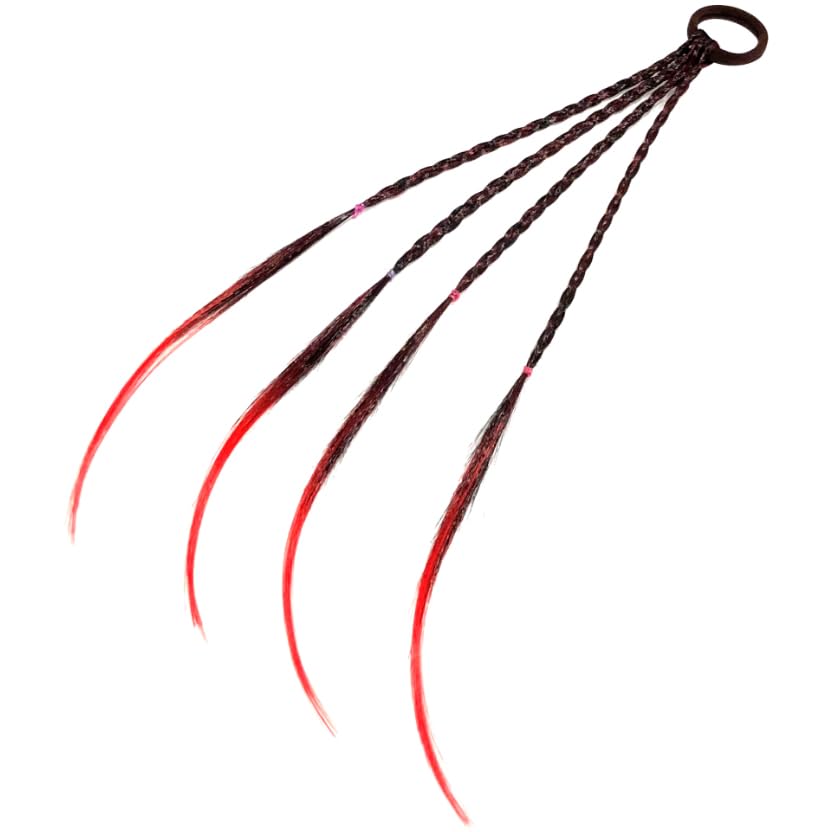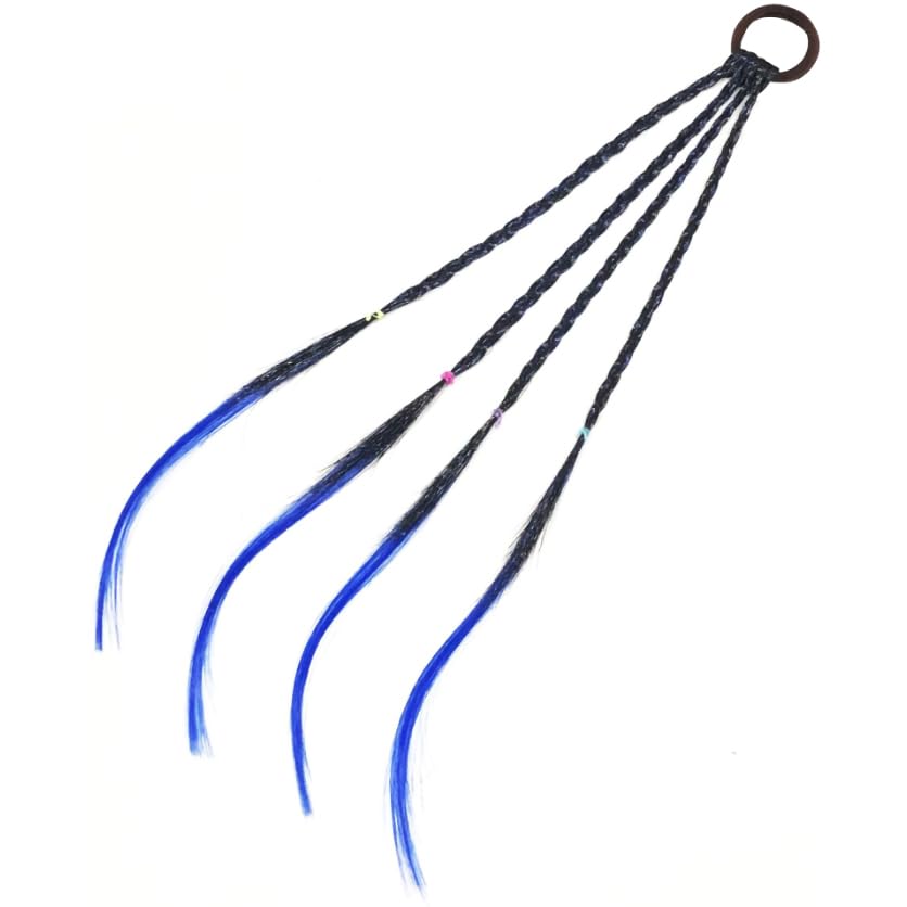 オーディオファン エクステ 編み込み 三つ編み 4本入り (4色各1本 赤 青 ピンク 紫) ヘアエクステ カラフル ウィッグ 髪 簡単 約40cm