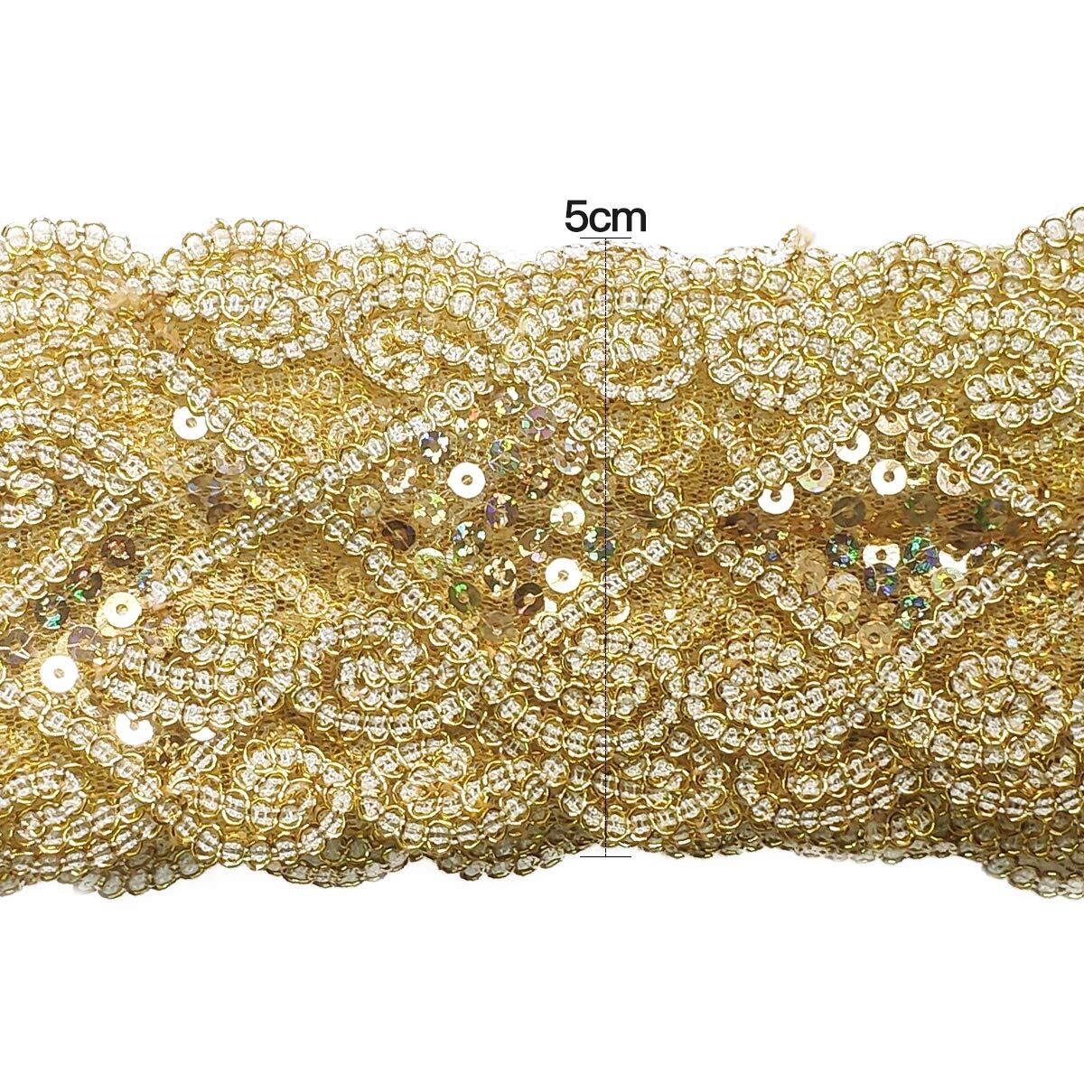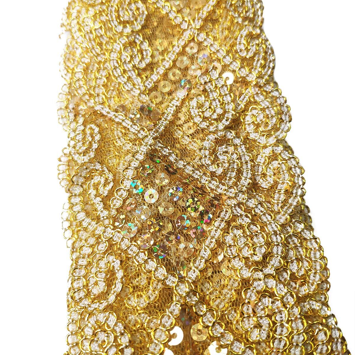 レースリボン 菱形モチーフ スパンコール 縫製 金色 長約9m 幅5cm カーテン、ウェディングドレス、DIY、服装装飾 手芸用 材料