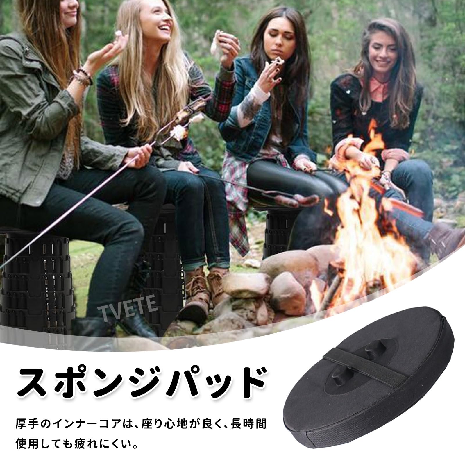 【確実な安定性 & コンパクト収納】折りたたみ椅子 クッション専用の2つのスナップ固定ポイントとゴムバンドでスツールに密着固定 椅子用クッションとしても使える伸縮式折りたたみ構造で、使用後は折りたたみ座布団サイズにコンパクト化 キャンプやピクニックでの持ち運びに最適な携帯性を実現する折りたたみクッション設計