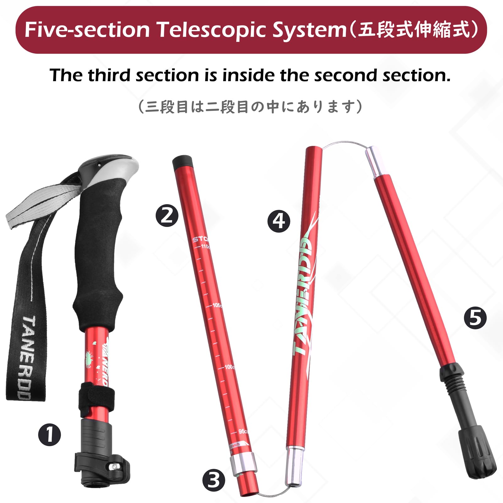 ?【折りたたみ&素早い組立】5段伸縮&折りたたみ構造で、収納時は約32cm/36cmと非常にコンパクト。ザックやバッグに簡単収納でき、組み立ても2段目を持ち3段目を引き出すだけのスピード設計。素早く使いたいアウトドアシーンに最適です
