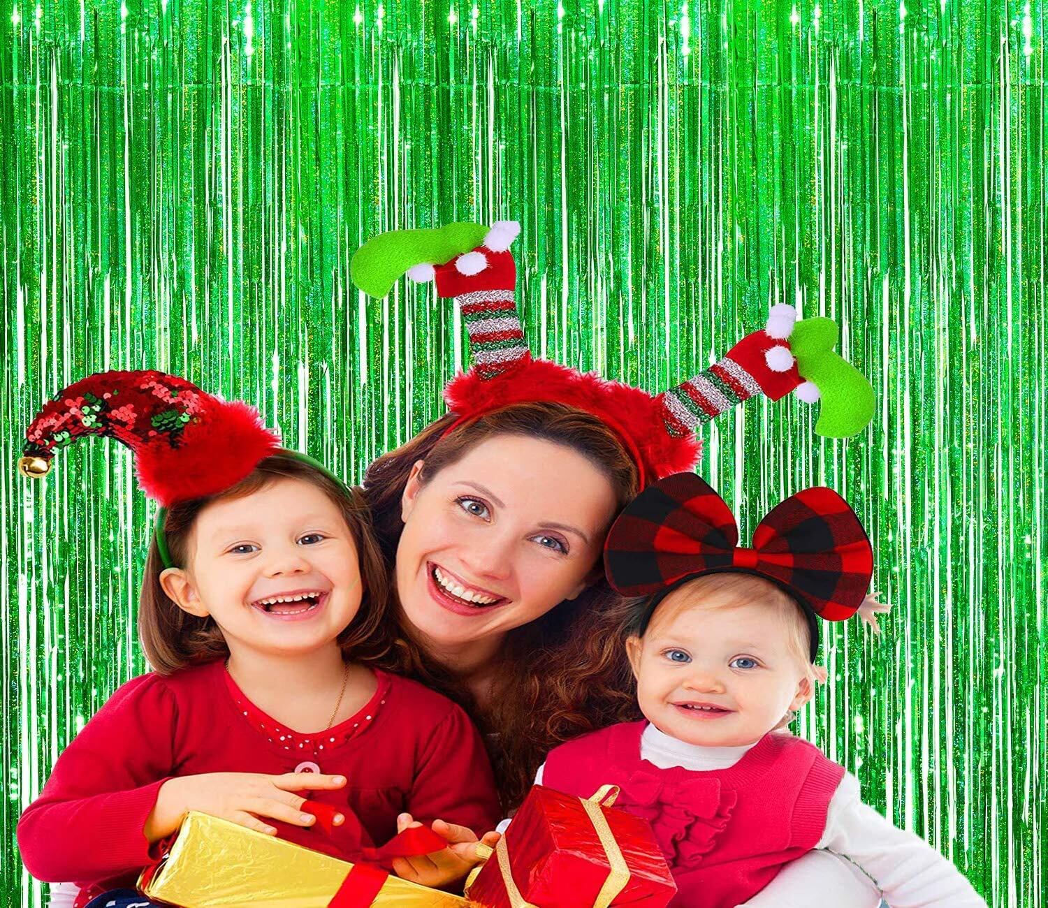 2個セット BRAVESHINE タッセルカーテン キラキラ 背景 明るい光沢 誕生日 クリスマス 飾り付け 100cm*250cm 誕生日 飾り カーテン birthday decorations パーティー デコレーション party decoration (グリーン)