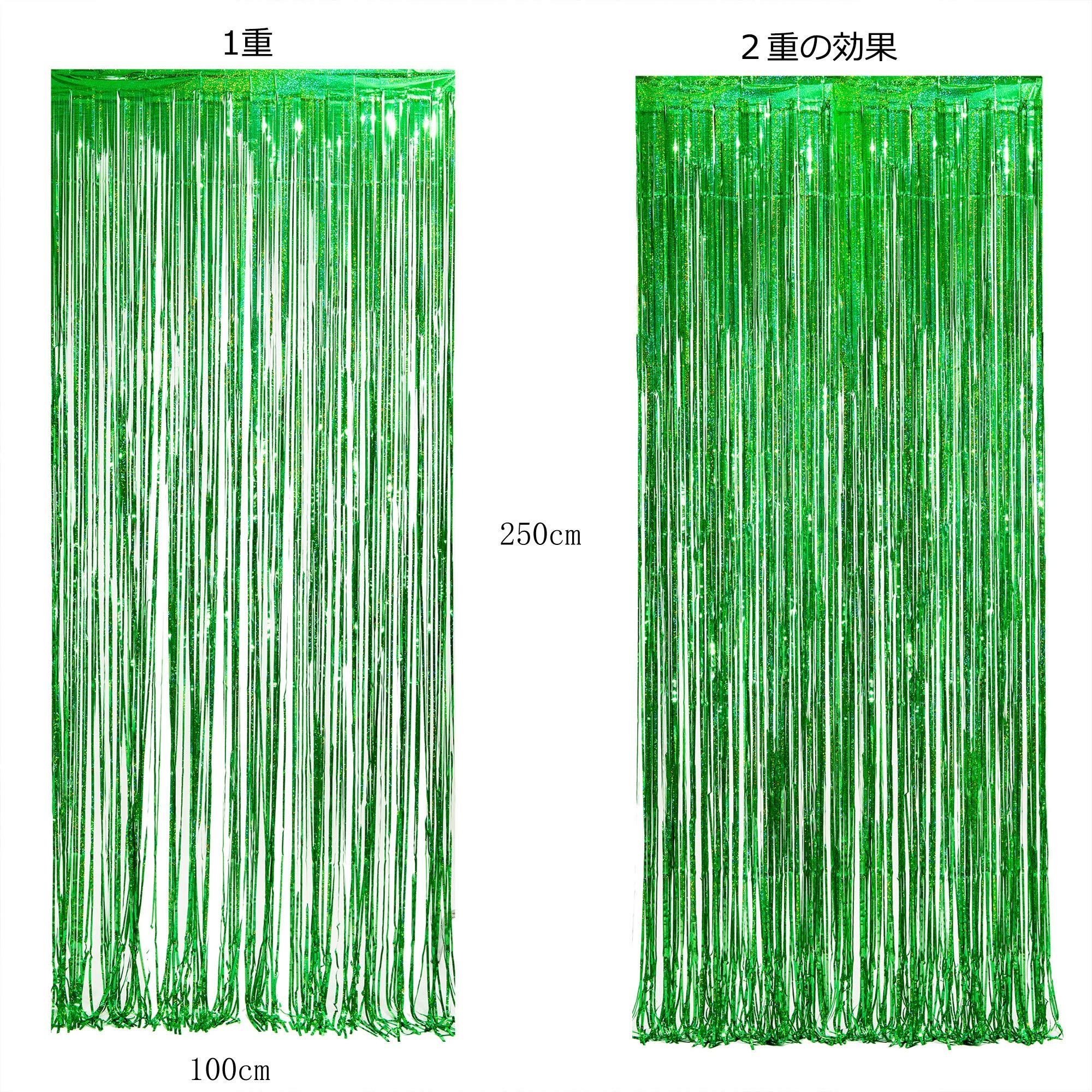 【数量限】2個セット BRAVESHINE タッセルカーテン キラキラ 背景 明るい光沢 誕生日 クリスマス 飾り付け 100cm*250cm 誕生日 飾り カーテン birthday decorations パーティー デコレーション party decoration (グリーン) | GIGATERA