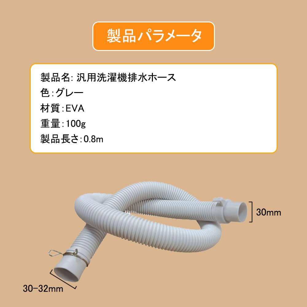 洗濯機排水ホース 交換用 全自動洗濯機対応 抗菌防臭EVA製 抜け防止 水漏れ防止設計 厚肉耐久 全長80cm 洗濯機の接続口は30mm 廃水パイプ 取替ホース