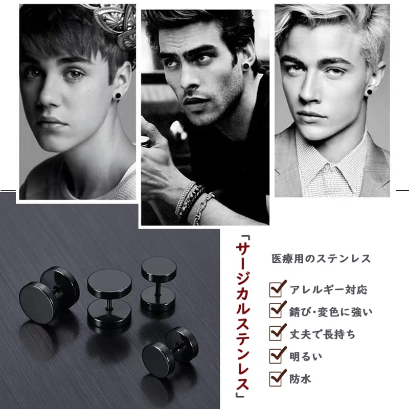 【セール】ピアス メンズ シンプル メンズピアス 黒 6mm サージカルステンレス スタッドピアス つけっぱなし ネジ式 ジュエリー 男女兼用 両耳用 キャッチ 人気 おしゃれ プレゼント レディース ファーストピアス ブラック 2個セット | GIGATERA