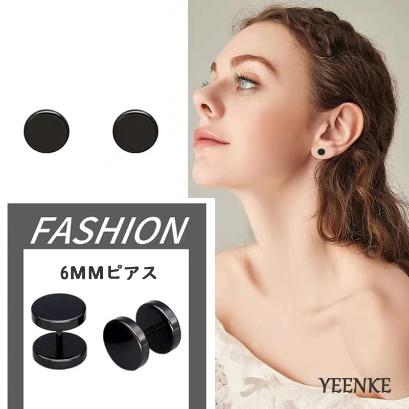 ピアス メンズ シンプル メンズピアス 黒 6mm サージカルステンレス スタッドピアス つけっぱなし ネジ式 ジュエリー 男女兼用 両耳用 キャッチ 人気 おしゃれ プレゼント レディース ファーストピアス ブラック 2個セット