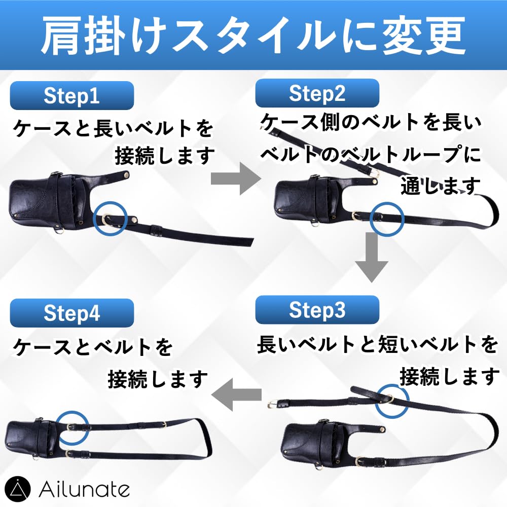 Ailunate シザーケース 美容師 トリマー 本革 レザー シザーバッグ 革 花屋 5丁 肩掛け 腰掛け ベルト付き