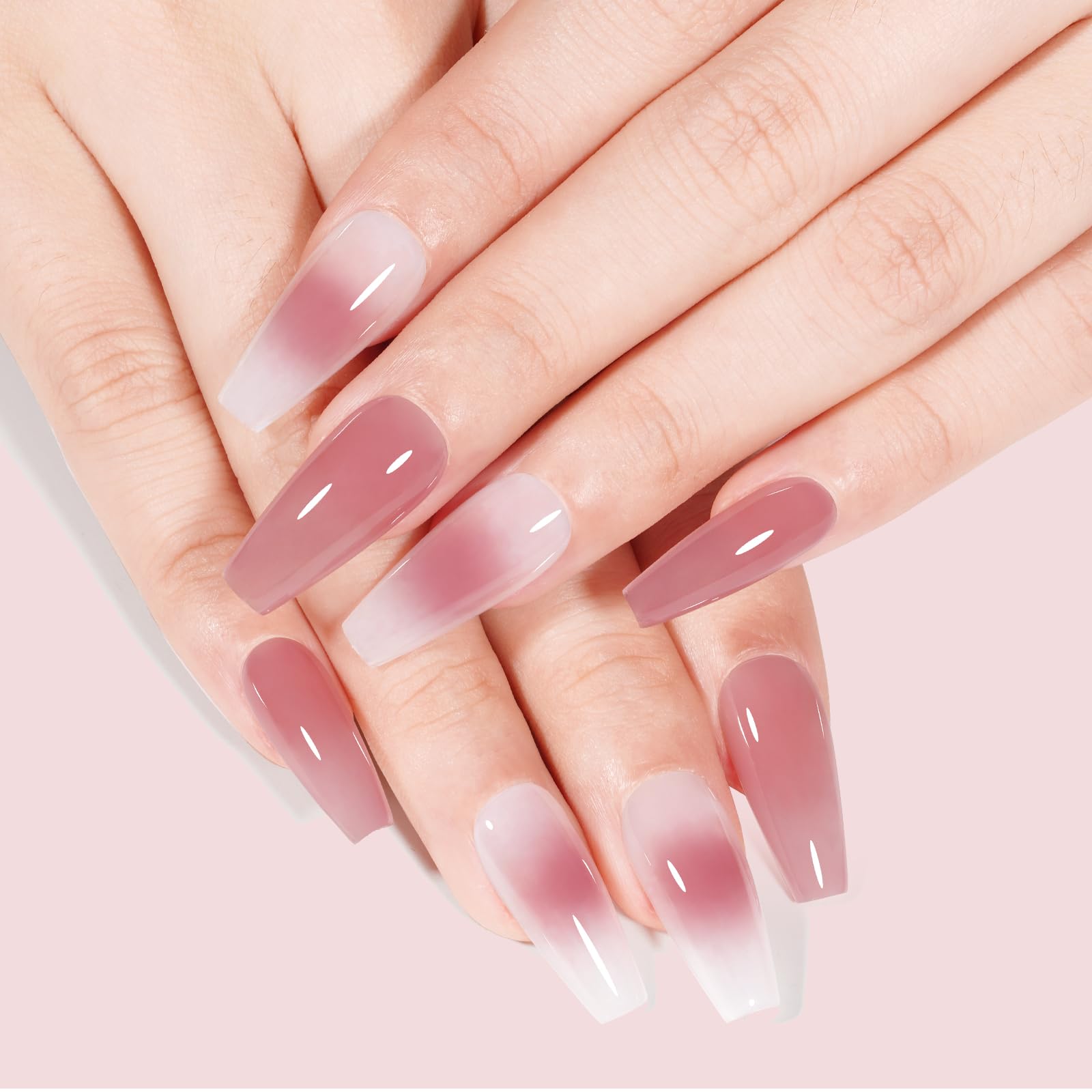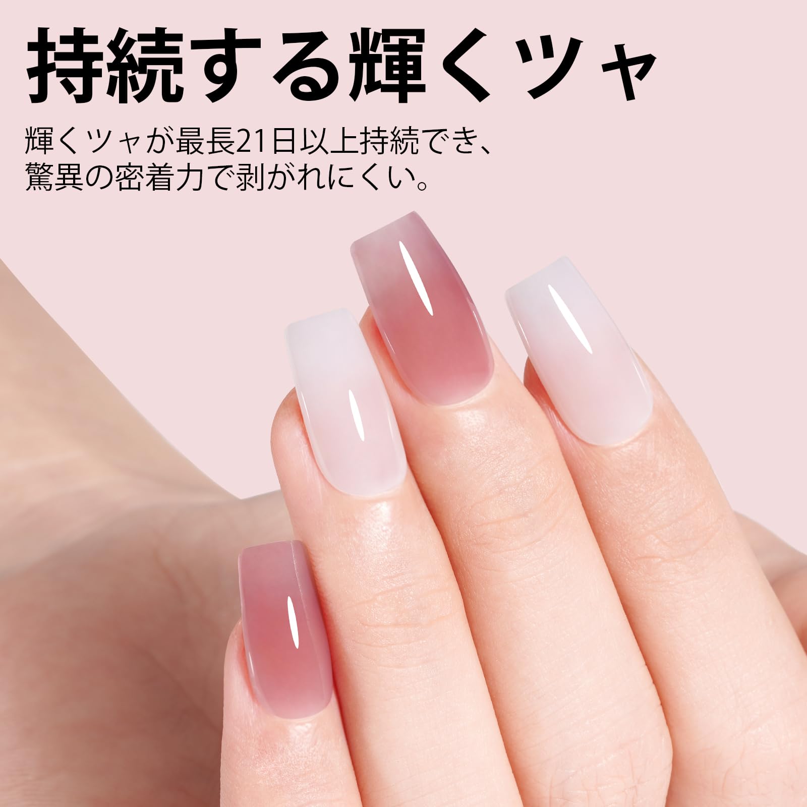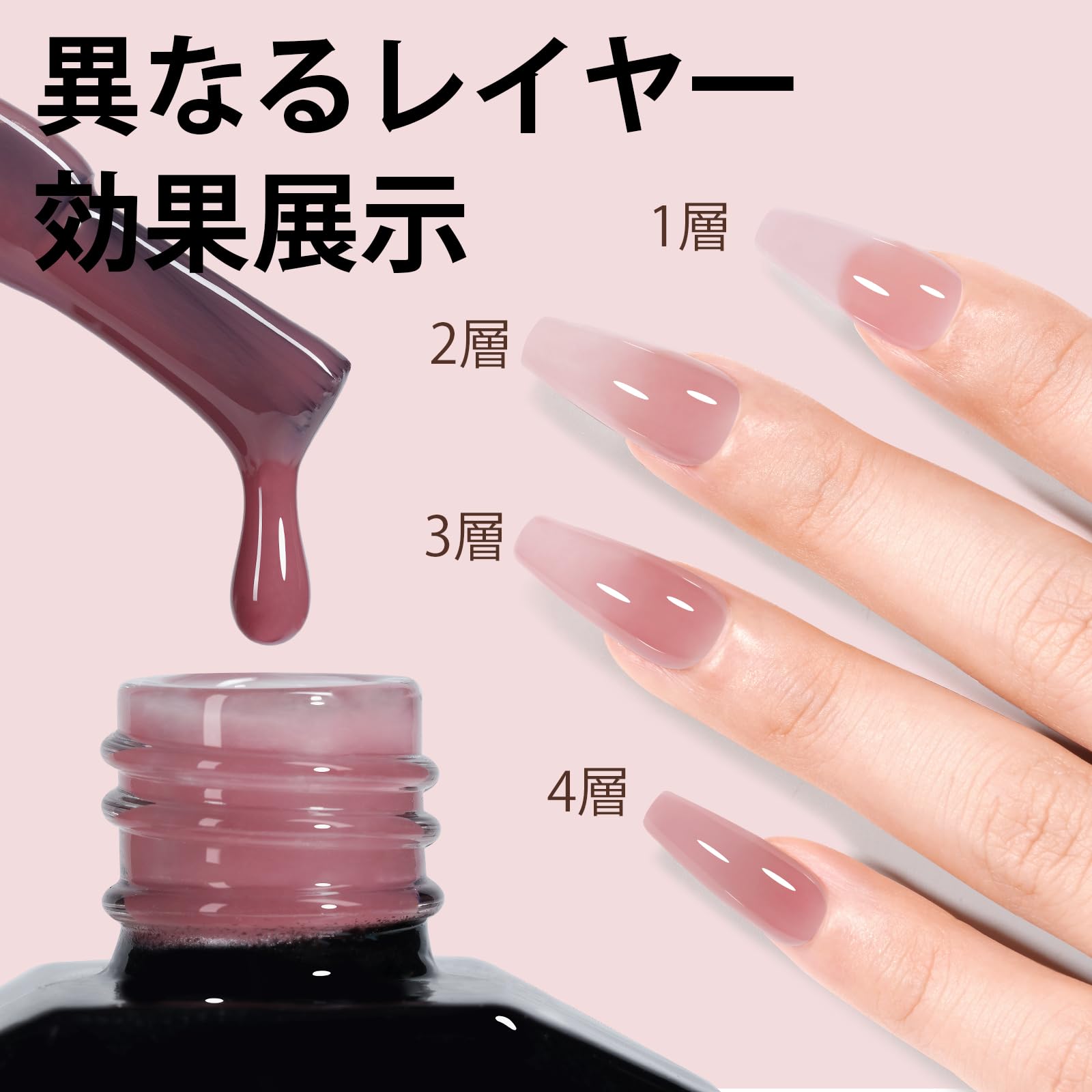 【ゼリースタイルのジェルネイル】オパールゼリーな質感にこだわったネイルジェル、透明感たっぷり。さりげなく洗練された透明感のあるヌードスタイル。日常生活、仕事、デートに使えます。 フレンチネイルを作成するベースカラーとしても使用できます。単色として使用だけでなく、ブルーミング、ホログラム、押し花などのりやデザインにも適用。