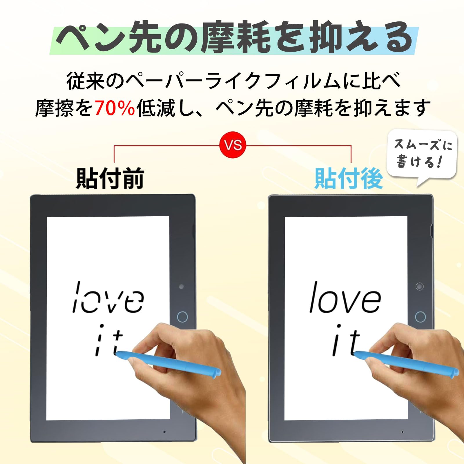 【ペン先の磨耗を70%低減】 最新素材を採用しや表面特殊加工によりペン先の磨耗を70%低減させるため、タッチペンを長く使用できます。【画面保護・指紋防止】鉛筆硬度3Hのハードコート加工により、フィルム表面の傷を防止します。表面特殊加工によりタッチ操作をしても指紋が目立ちにくくなっています。