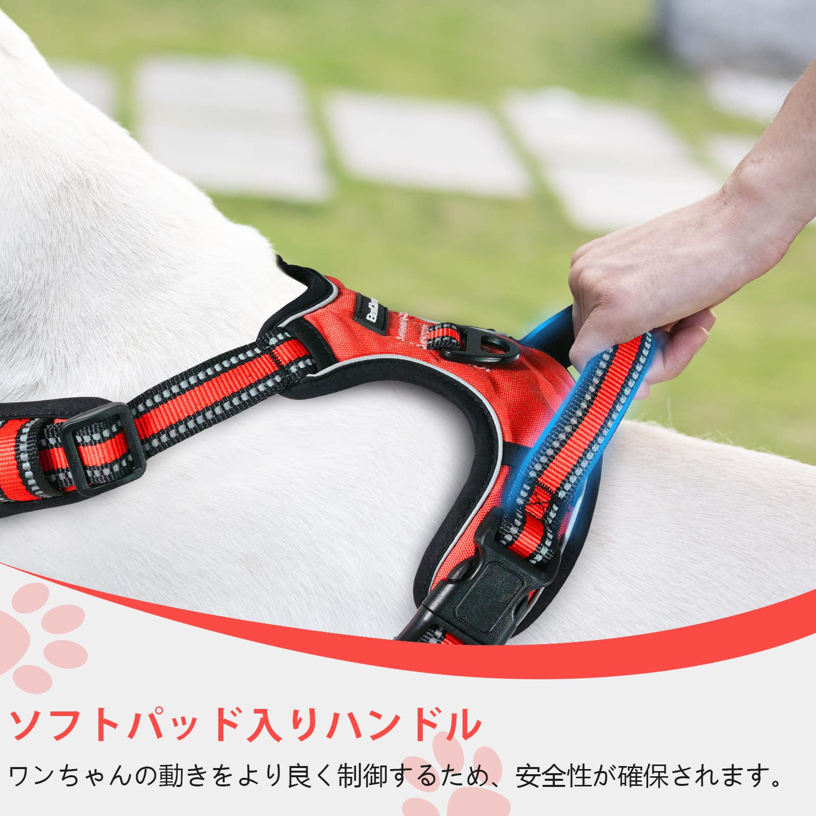 【夜間反射&快適な生地】:この犬用ハーネスが反射素材があるので、夜間の認識性が確保できます。360度に光を反射できて、暗い夜道でも目立ち、遠くから注意を引きて、夜で散歩などより便利になります。安心の犬用ハーネスです。ストラップと耐久性のある生地は快適で、 引っ張る圧力が体に均等に分散されます。柔らかいパッドが付いて肌への摩擦を最小化になります。通気性のあるメッシュの裏地は、長時間着ても心地がいい、着たり抜いたりする簡単になります!