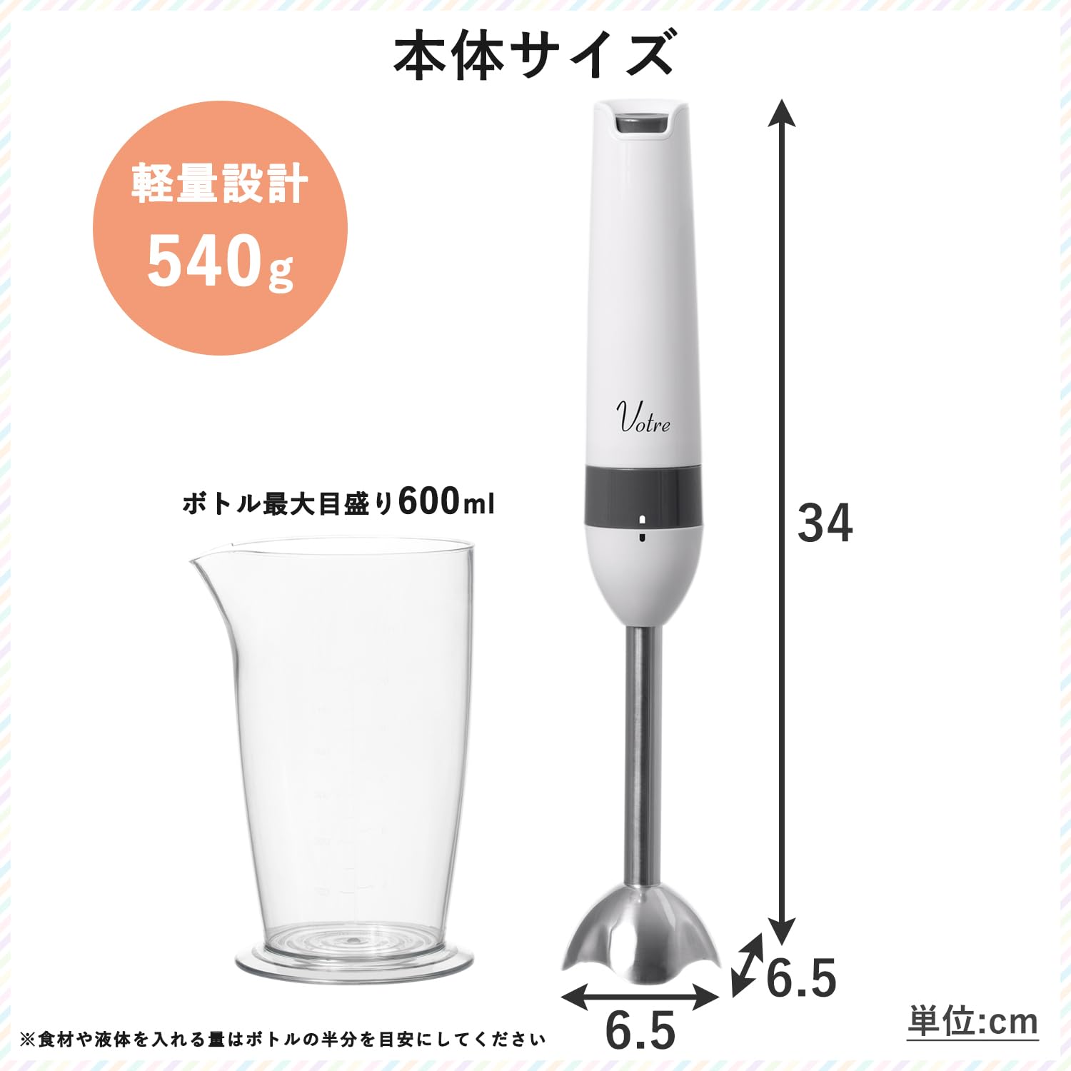 【新着】[山善] ハンドブレンダー 電動 ハンドミキサー 離乳食 スムージー 1台2役 (つぶす/混ぜる) ボトル食洗機対応 Votre 軽量 ホワイト YHBA-S120(W) | GIGATERA