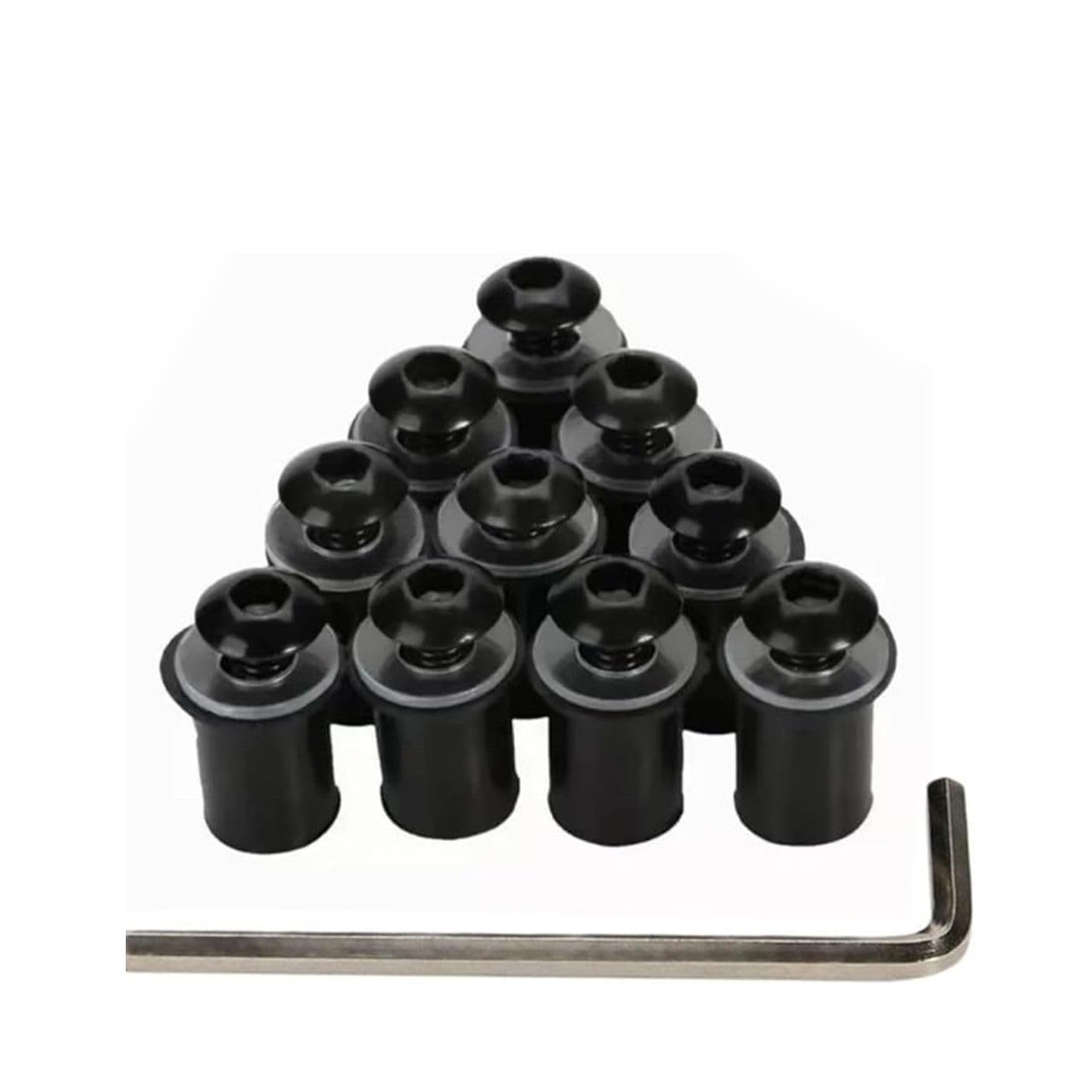 スクリーンボルト ウェルナット m5 10個セット 5mm ボルト 六角レンチ 付き ボルト バイク の ウィンドシールド の固定 カヤック オートバイ バイク用 (黒色(10個))