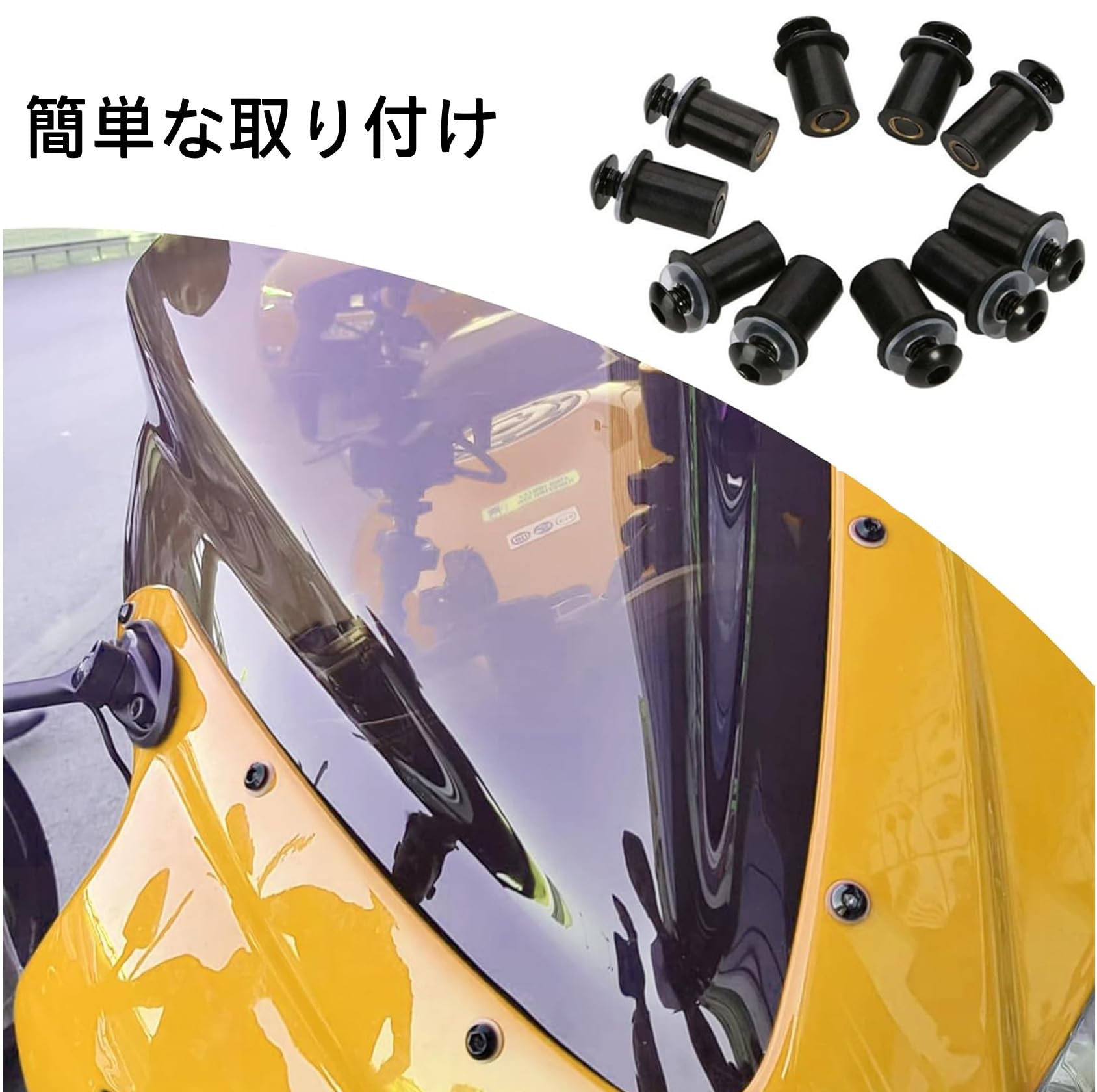 【取付簡単】六角レンチが付属しており、すぐに取り付け作業ができるため、非常に便利です。ウィンドシールド、カウル、スクリーンの固定などに使用できます。