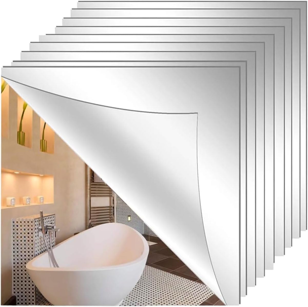 【自由組合】正方形を何枚も並べて使うのはもちろん、角を丸く切ったり、 ハート、星、足跡マークに切ってもオシャレ,お部屋のデコレーションから工作、手芸など使い方いろいろ! 鏡を設置するだけで空間が広く見えたりと、インテリアのアクセントにもなります。 パーティーやイベントの飾りつけに使ったり、小物や雑貨に貼ったり、アイデア次第で楽しくデコレーション