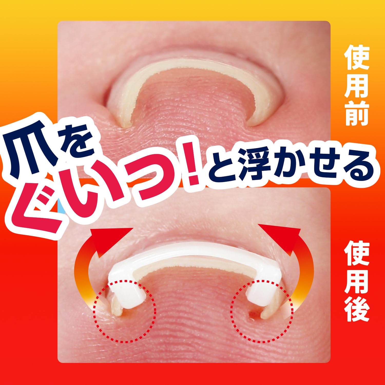 【簡単装着】弾力性の高い樹脂素材のフックを爪に引っ掛けてシールを貼るだけです。巻き爪を浮かせて、くい込みがラクに!簡単装着で爪がリフトアップ