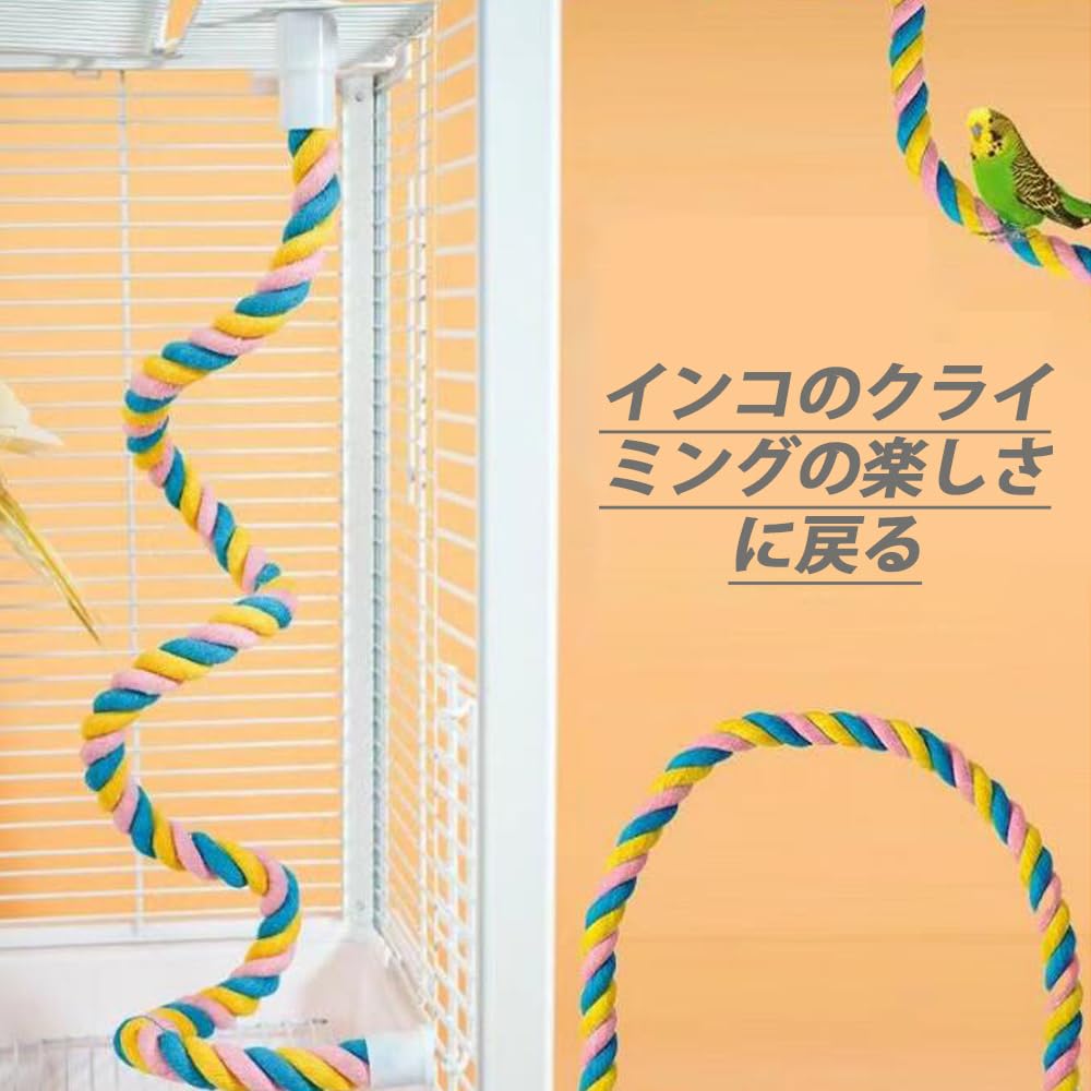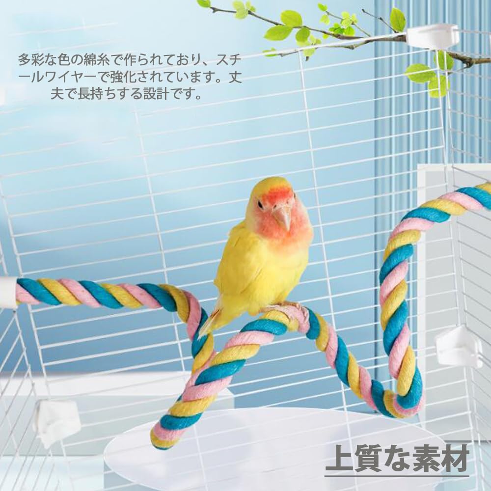 GOODCHI インコ止まり木 鳥用止まり木 丈夫 ストレス解消 取り付け簡単 オウム ケージ飾り 鳥用 ロープ パーチ 60cm