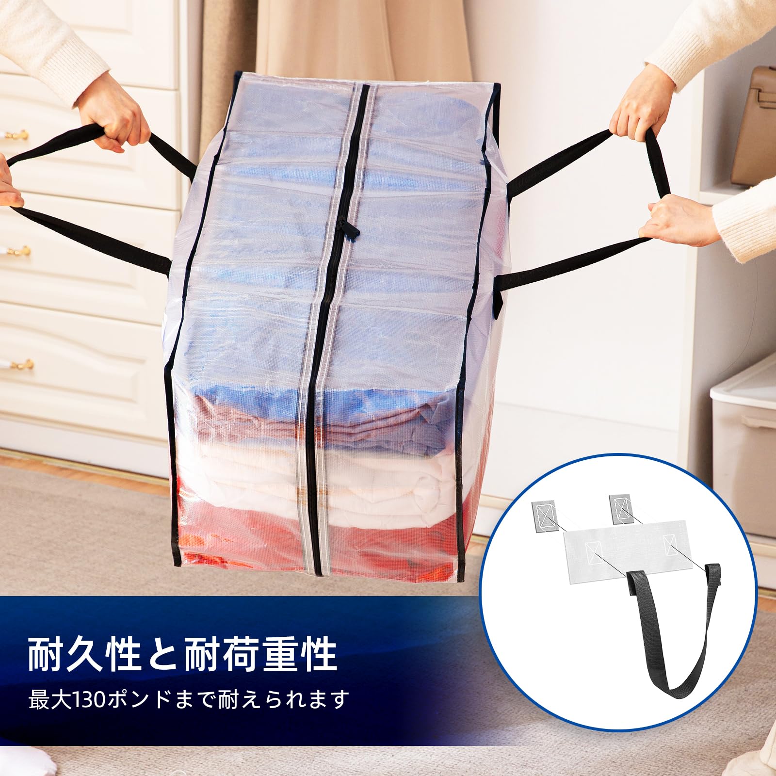 【新着】TAILI 大型収納袋 引越しバッグ 布団収納カバン 特大容量 ビッグバッグ 寝具ケース 持ち手付き 洋服 衣装ケース 羽毛ふとん 防塵防水 折りたたみ式 省スペース 引っ越し 背負える キャンプ 旅行 耐荷重 透明 4個セット | GIGATERA