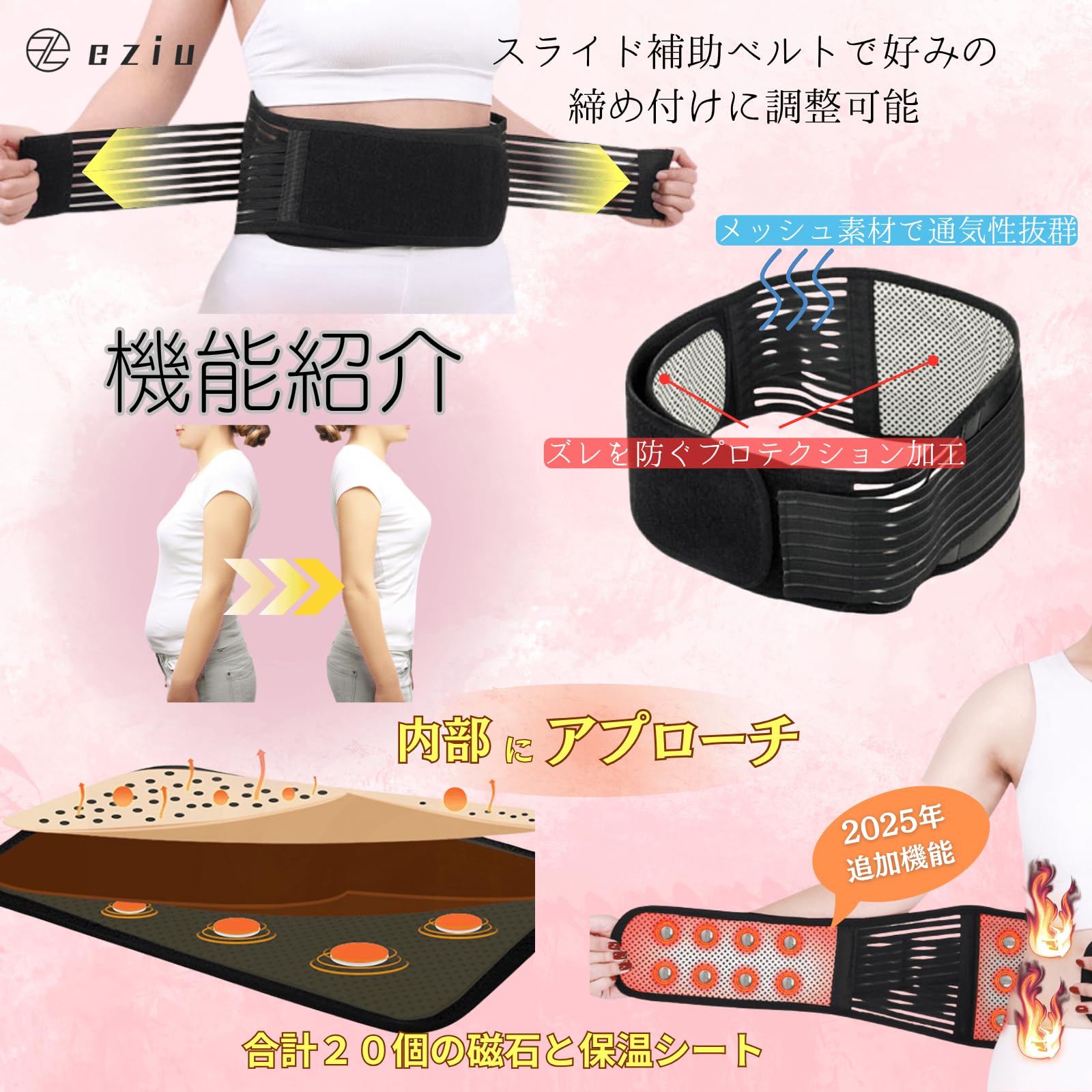[eziu] 【ドレス専門店発!補正力×美ライン】 瞬間くびれ 肋締めベルト コルセット ウエストニッパー 腰サポーター 肋骨ベルト 肋骨締め 男女兼用