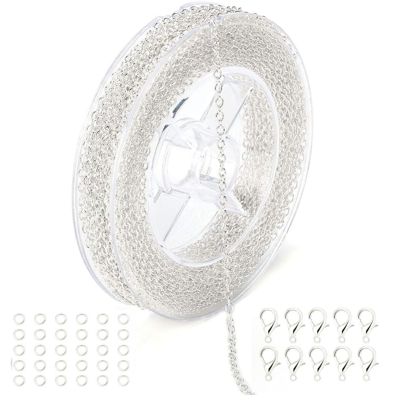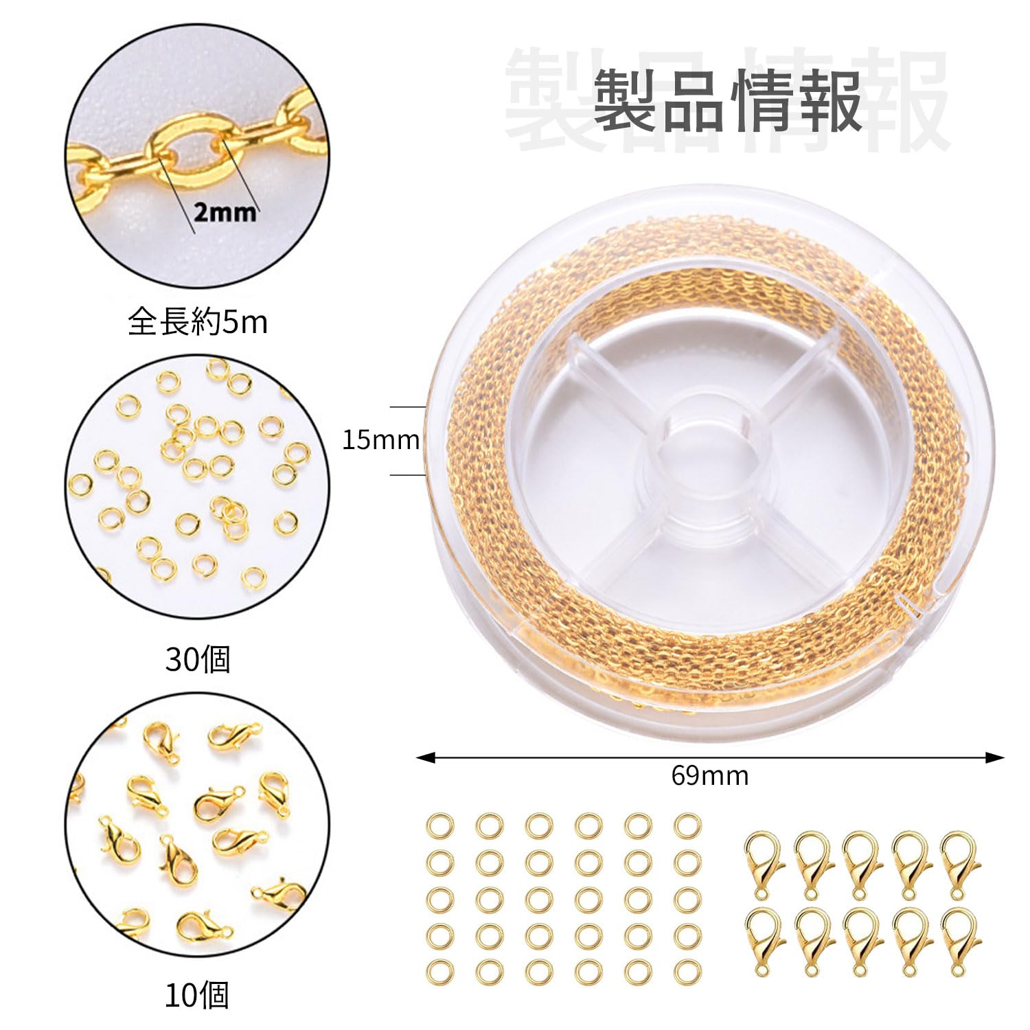 ??【スーツ内容】アクセサリー用チェーンx1巻、長さ約5m、幅約1.5mm、ロブスタークラスプx10個、ジャンプリングx30個。