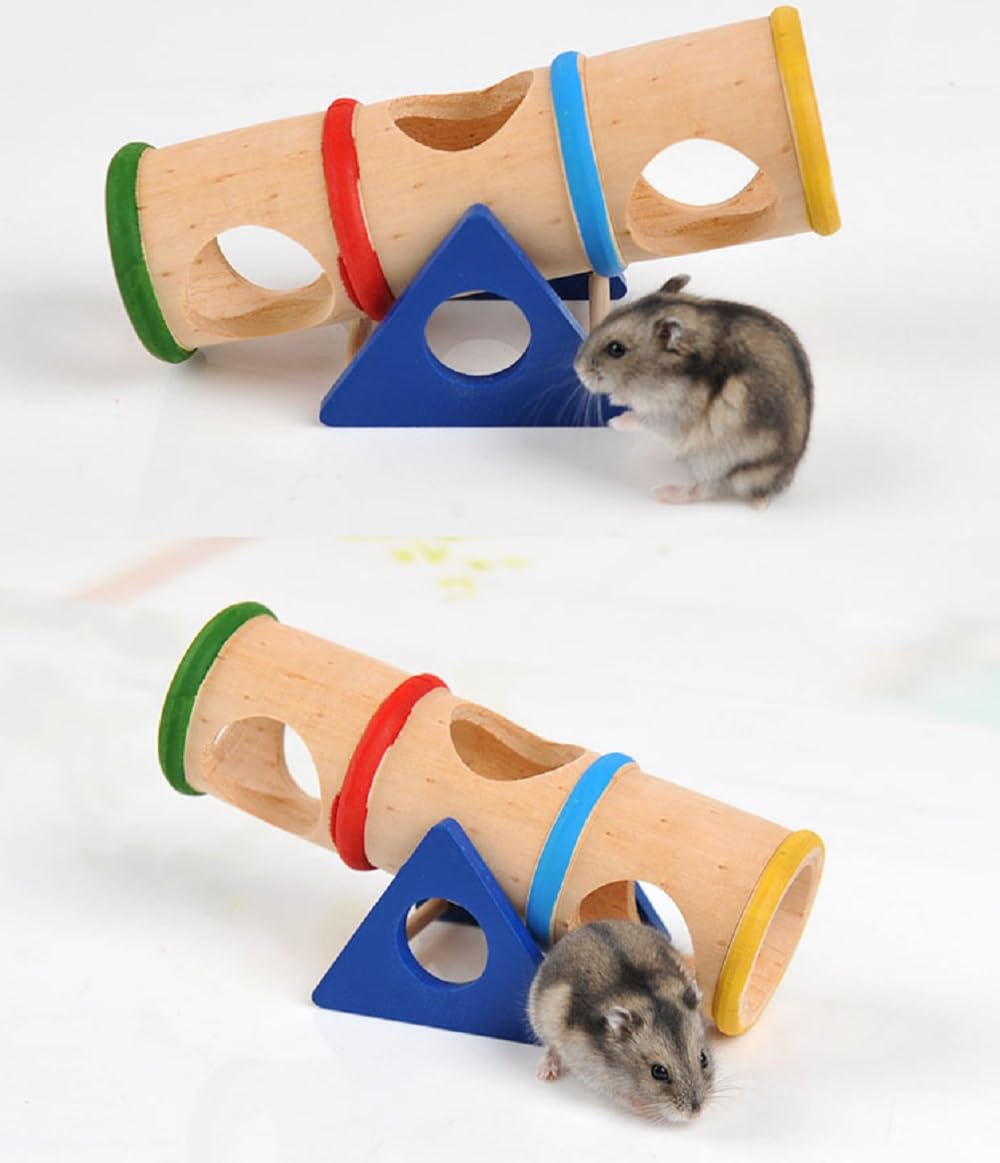 siawadeky ハムスター おもちゃ 天然木製 トンネル 穴付き 木の棒 シーソー 歯磨き あそび道具 運動不足解消 かわいい 遊び場 面白い ペット玩具 隠れ家 ストレス解消 ウサギ チンチラ リス モルモット 小動物用