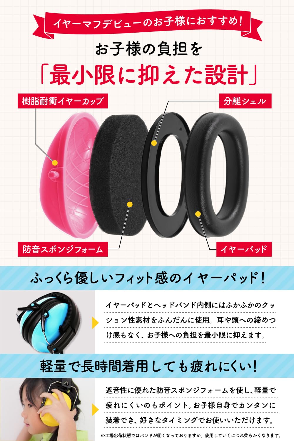 【子供用が快適に装着できます】シェル部分の調節機能をスライドさせることでお好みのサイズに調節していただけます。簡単に装着できるためお子さまでもご自身で装着できます。イヤーパッドは装着感の良い柔らかい素材を使用しています。