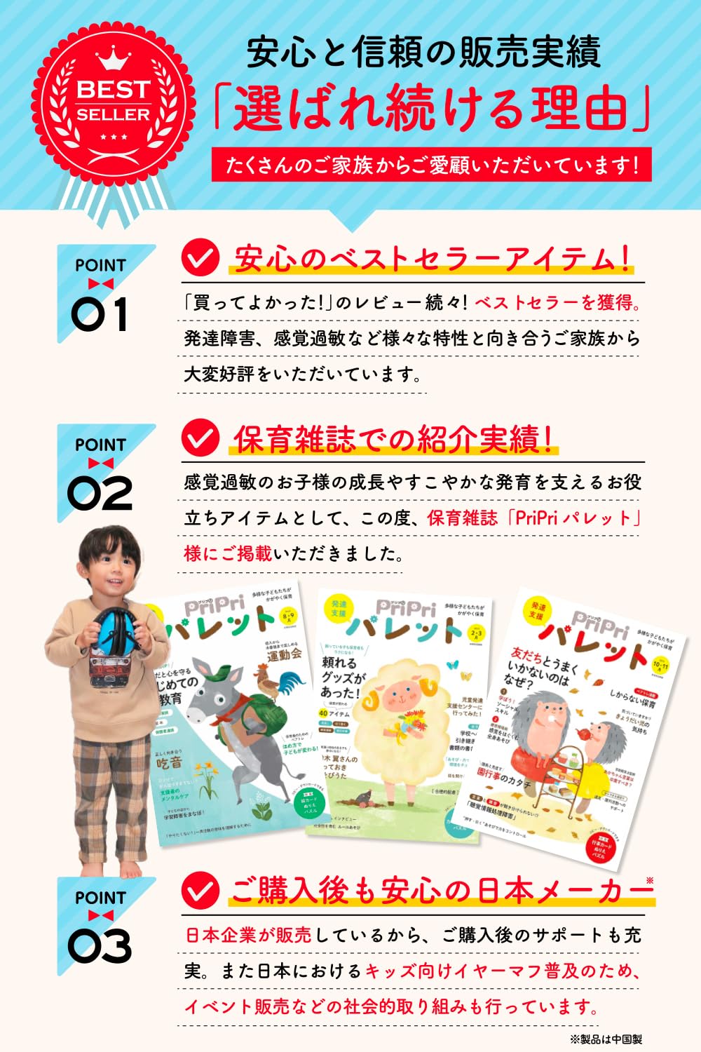 【聴覚過敏の方も使用しています】イヤーマフが周囲の騒音からお子さまも丸ことで安心して外出することができます。
