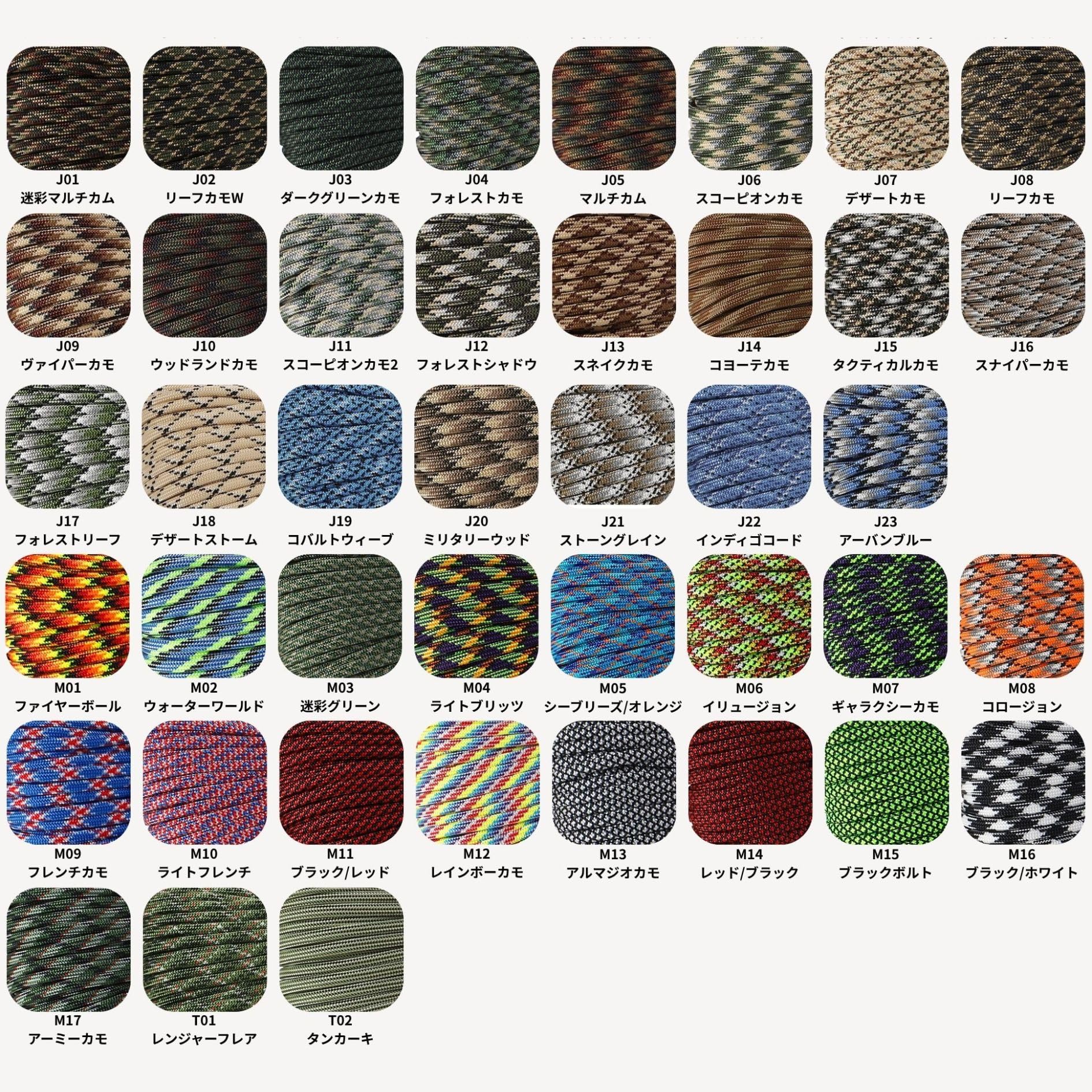 優れた耐久性と柔軟性があり、テントやタープの設営時のガイロープとしてはもちろん、パラコードブレスレッドなどアクセサリーの制作にも最適です。
