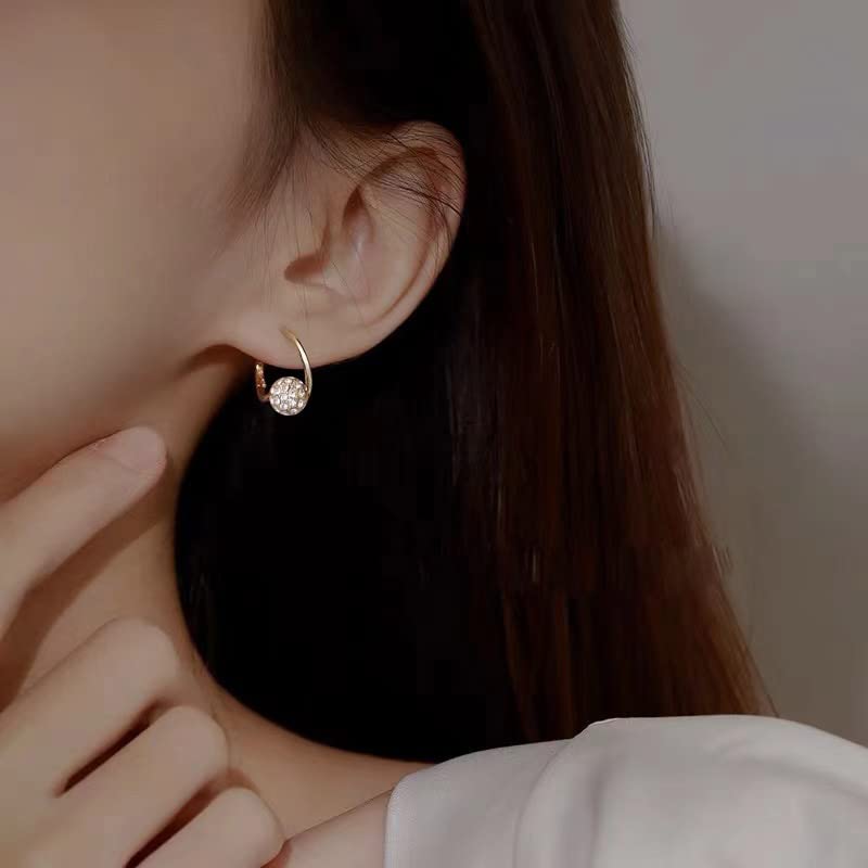 【きれいめ華やかデザイン】二重に広がるリングピアスの片方にジルコニアを敷き詰め、温かみのあるリング本体と、輝くジルコニアをミックス。サイズにもこだわって設計し、小ぶりなまま存在感があるサイズ設計