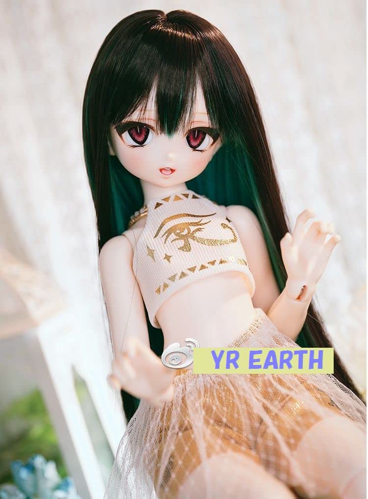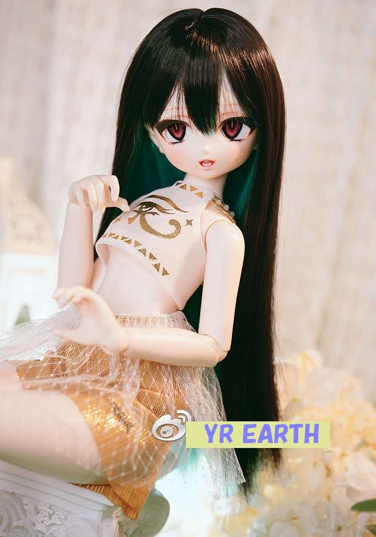ドール用 耐熱 ウィッグ ST138 バイカラーストレートヘア ブラック×グリーン 頭囲22〜23cm DD互換かつら