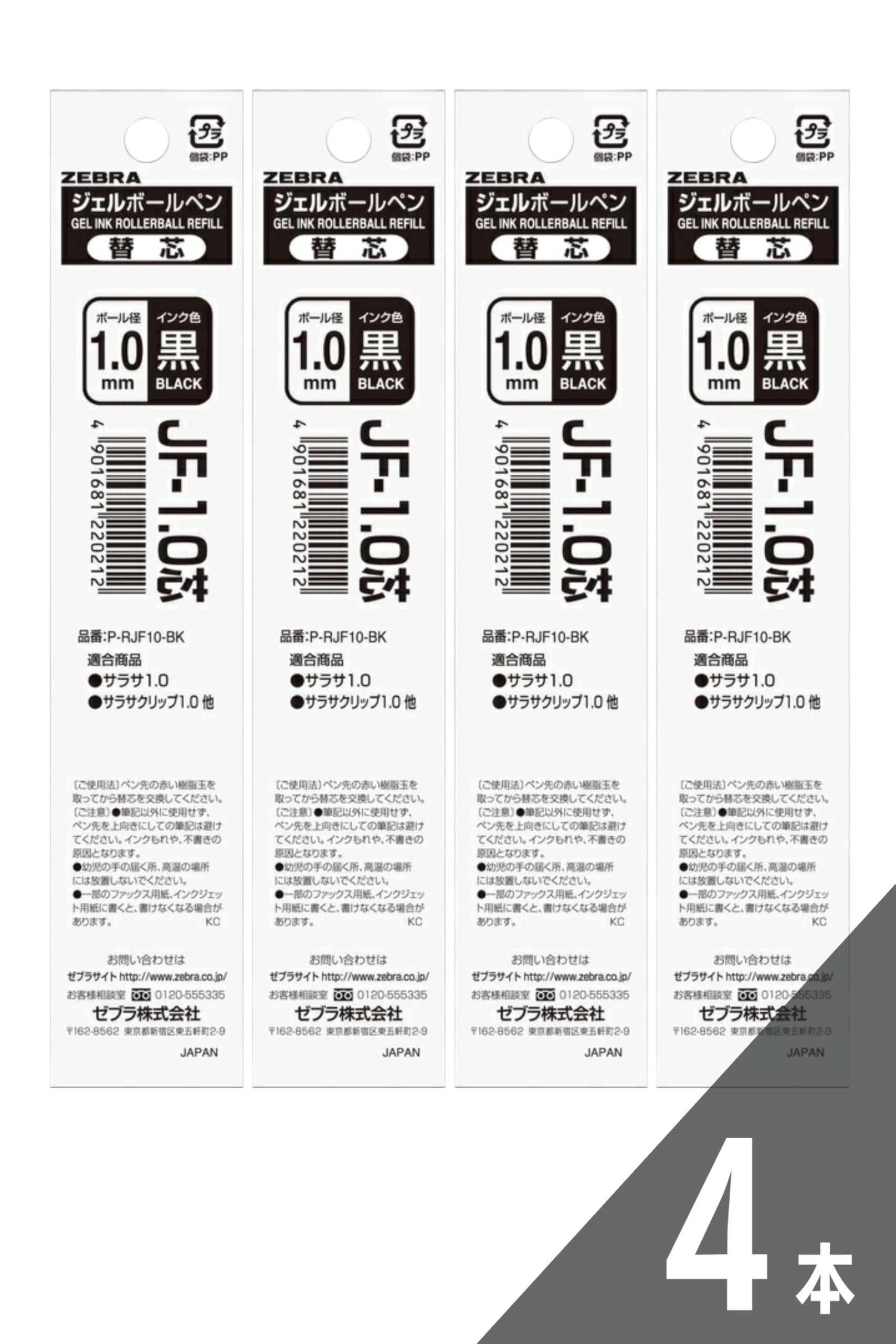 ゼブラ ZEBRA ジェルボールペン サラサクリップ用 替え芯 1.0mm 黒 4本セット JF-1.0/ RJF10-BK リフィル Sarasa Zebra Gel Ballpoint Pen Sarasa Clip 1.0 mm refill【適合商品: JJE15-BK 】Refill Compatible With: JJE15-BK/P-RJF10-BK