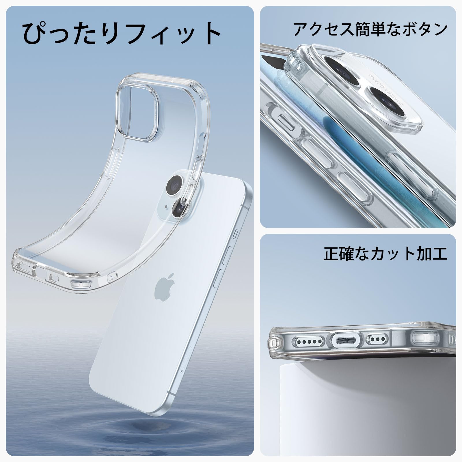 【スリムで軽量】厚さわずか1.6 mmの厚さのiPhone 15用カバーは、ケースレス感覚で握りやすい設計です。柔軟なポリマーにより、着脱も簡単です。