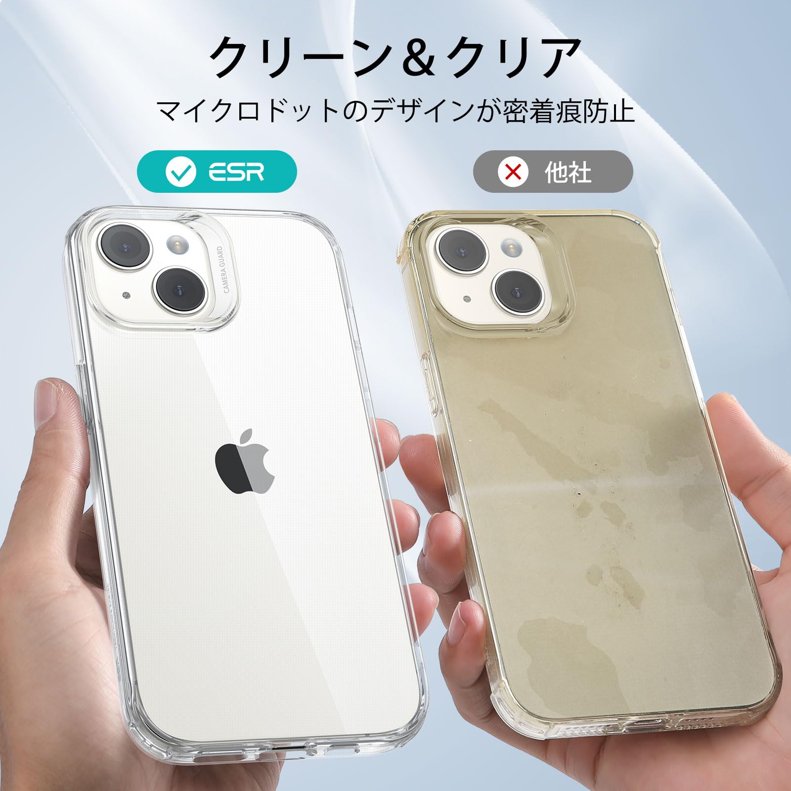 【クリーン&クリア】高品質のポリマーがケースの透明度を維持し、マイクロドットのデザインが密着痕を防止し、スマホの本来のスタイルをアピールします。